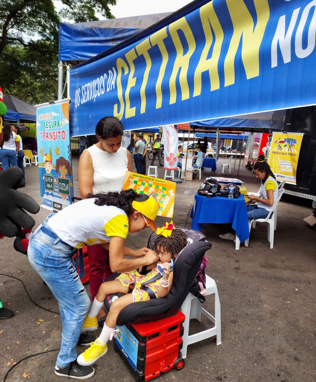 Na Praça Otávio Mangabeira, que no dia a dia tem grande fluxo de pessoas, a equipe de Educação para o Trânsito, reforçou as campanhas “Criança Segura no Trânsito” e “ São Tantas Emoções”. A coordenadora Elessandra Bispo orientou os pais sobre o uso da cadeirinha, dos equipamentos de segurança no uso da bicicleta e quanto ao risco de transportar menores de dez anos em motocicletas.