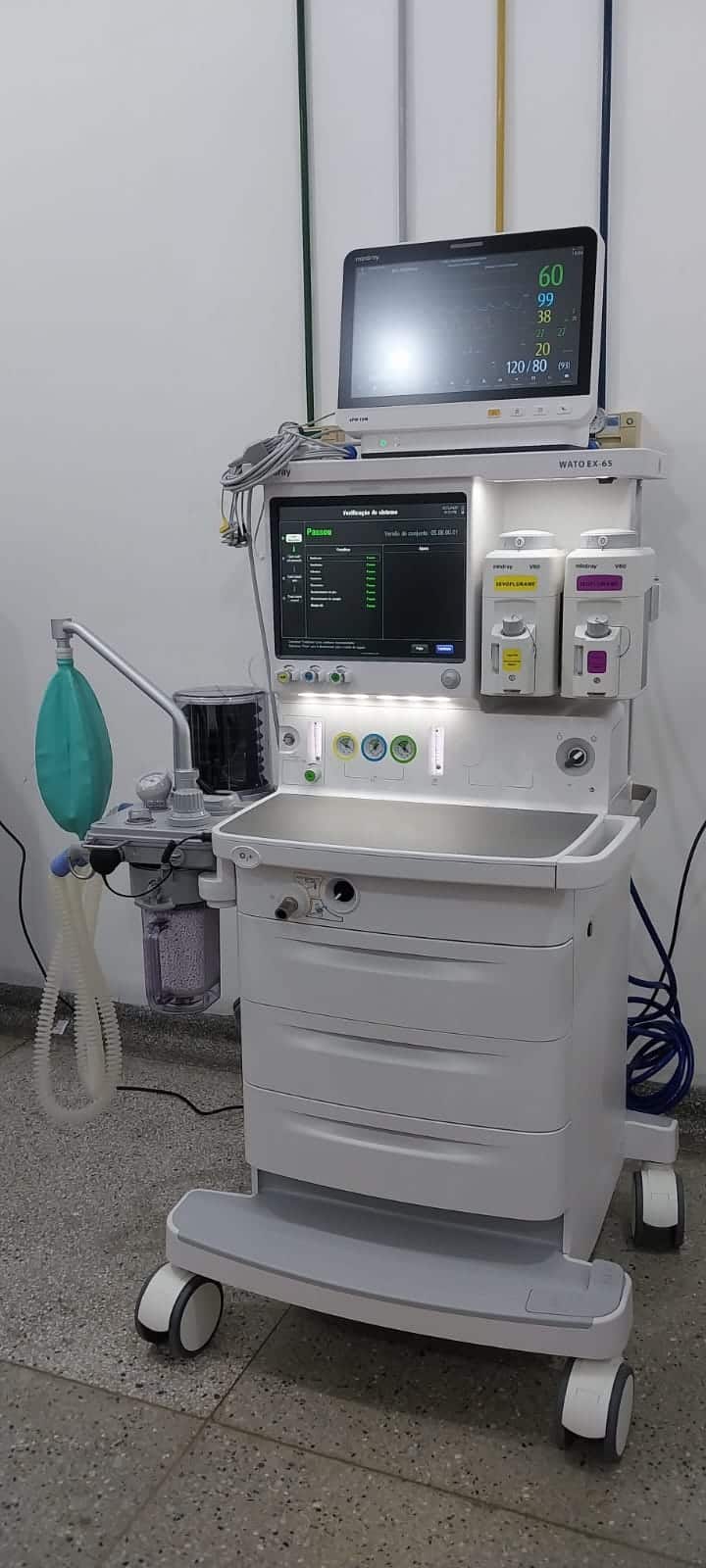 Entre os itens, merece destaque o aparelho de anestesia de última geração Mindray Wato EX-65. Vale destacar que a unidade hospitalar é a primeira da região a receber o modelo mais novo equipamento, que conta com mais recursos tecnológicos e características que vão tornar os procedimentos cirúrgicos bem sucedidos.