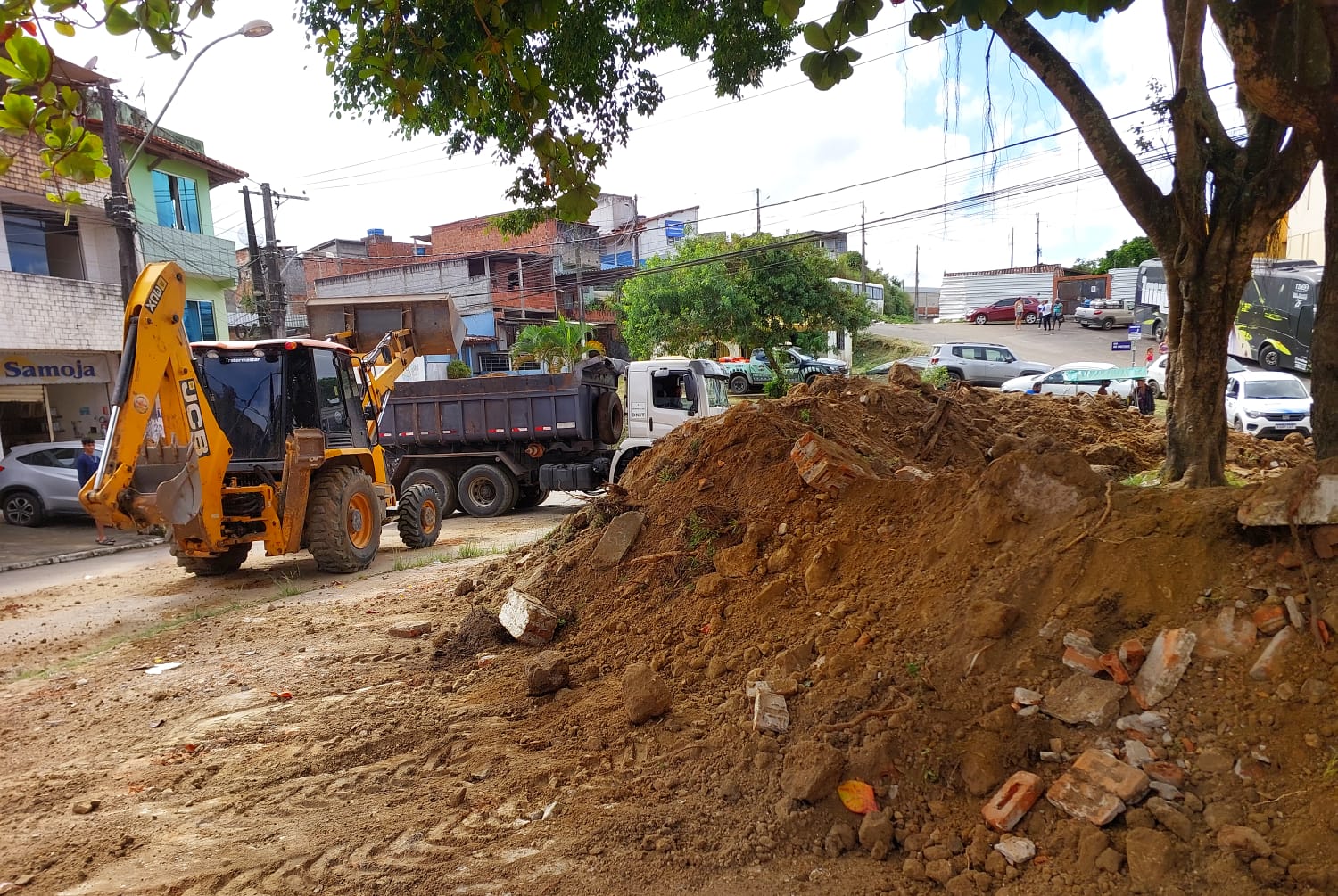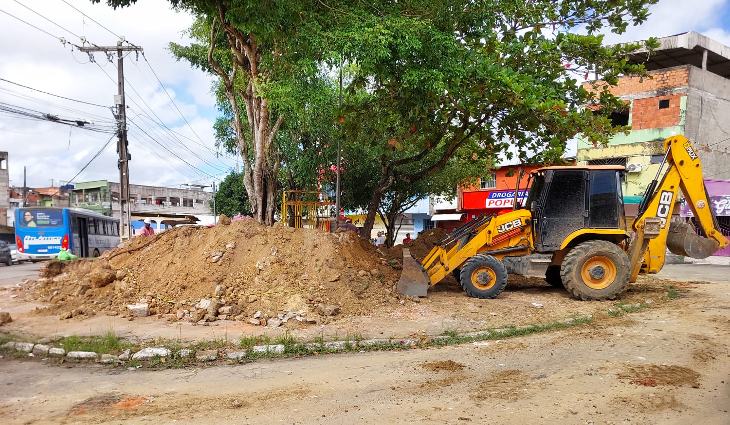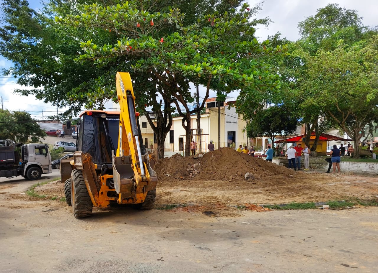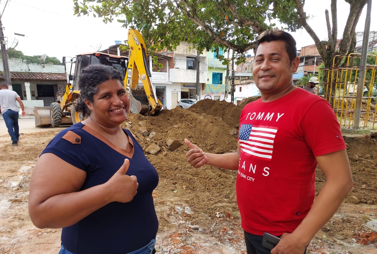 Legendas: 1. Prefeitura de Itabuna inicia obra de requalificação da praça do Santa Inês 2. Comerciante Lucinélia de Jesus Rocha e o professor Liandro Portela satisfeitos com obra na praça do Santa Inês – Fotos Pedro Augusto