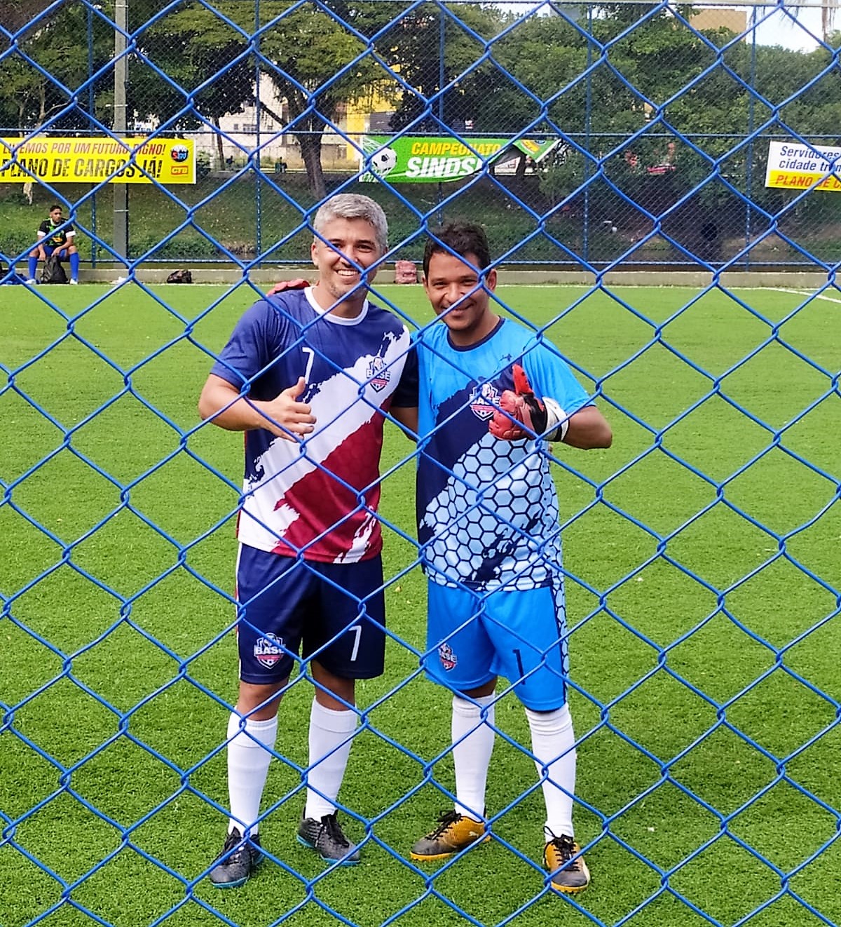 Legenda: Presidente da FASI, Roberto Pacheo Jr prestigiou o time do Hospital de Base no último jogo – Fotos Ascom