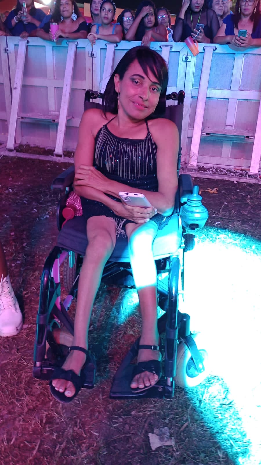 A cadeirante Andreia Vasconcelos teve o privilégio de assistir até agora bem pertinho do palco e em segurança todos os shows. O espaço uma sugestão do prefeito Augusto Castro é reservado para as pessoas com deficiência e principalmente cadeirantes que veem os shows e interagem com os artistas de forma segura, tranquila e protegida.