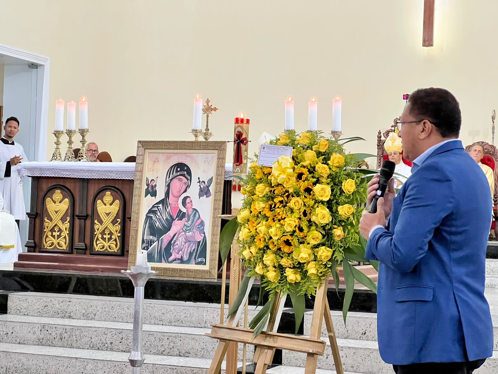 Depois houve a apresentação de mensagens pelo padre Moisés Souza, que fez agradecimentos aos fiéis e católicos que colaboraram para as homenagens, incluindo o prefeito Augusto Castro, a professora Edehilda Oliveira, Gracinha Rainha da Paz, do laicato diocesano, e padre Vinícius, representante do clero, todas destacando atuação do prelado, que consagrou à vida religiosa os padres José Roberto Araújo, Ednaldo Martins dos Santos, Luis Alves, Gilvan Oliveira de Souza, Vinícius e Acássio, Wellington Conceição do Carmo e, dentre outros