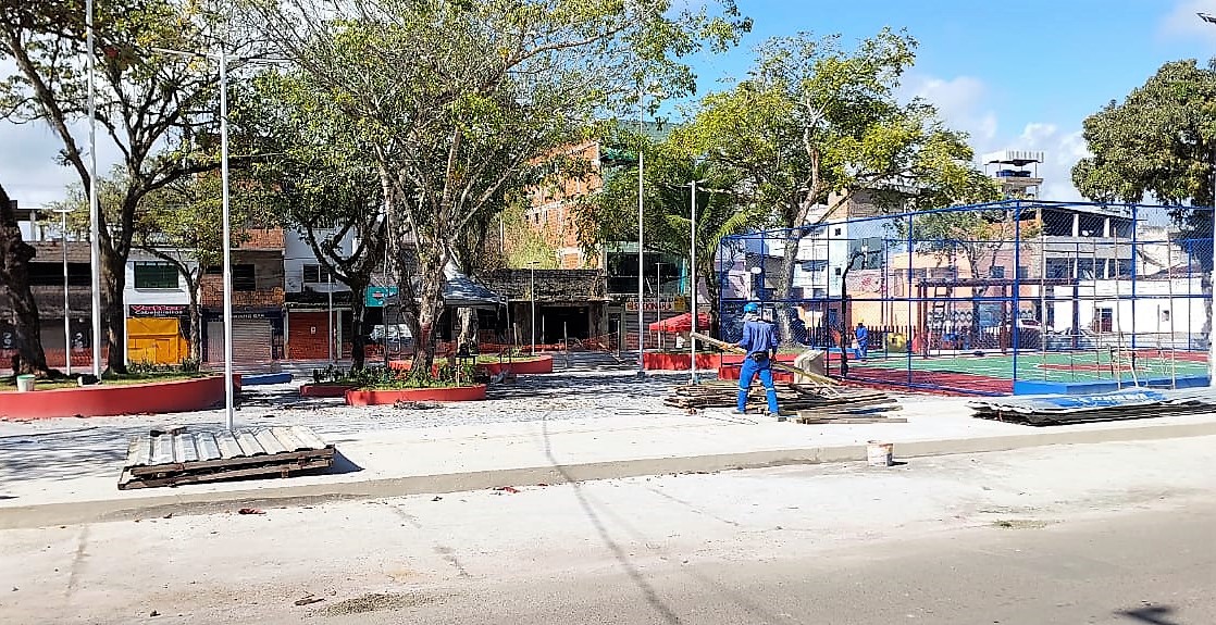 Legenda: Prefeitura de Itabuna ajusta detalhes para inauguração da Praça Heitor Farias no Bairro Mangabinha – Fotos Pedro Augusto