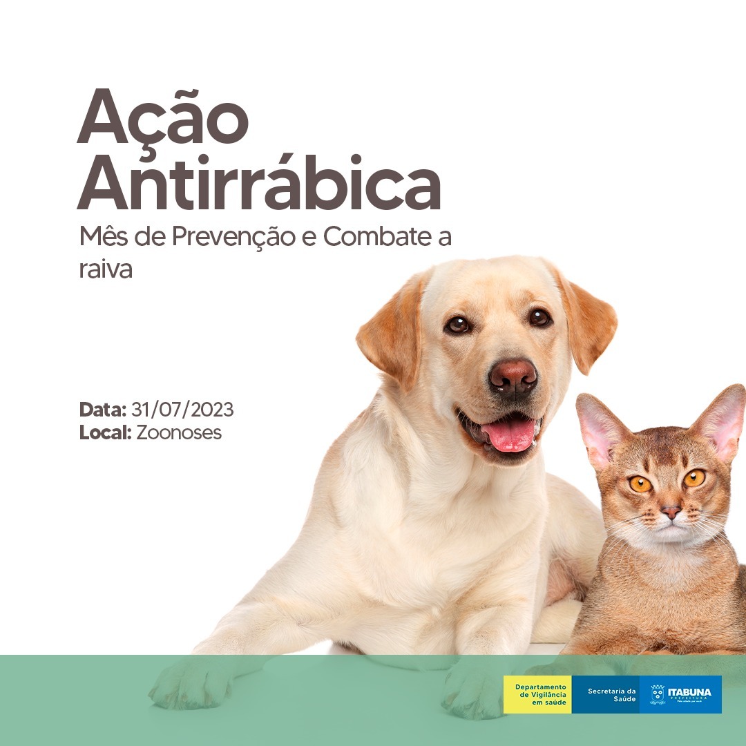 A Prefeitura de Itabuna, por meio do Departamento de Vigilância em Saúde da Secretaria Municipal de Saúde, espera imunizar pelo menos 30 mil animais, entre cães e gatos, a partir do dia 31 deste mês, durante a Campanha de Vacinação Antirrábica 2023. No primeiro dia, a vacinação será na sede provisória do Centro Controle de Zoonoses, na Avenida das Nações Unidas, no centro da cidade, na antiga base operacional do SAMU-182, em frente à Catedral de São José.