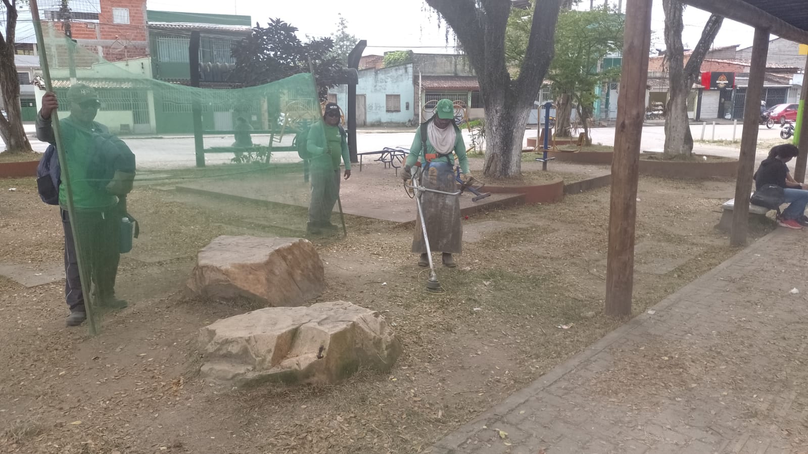 O mesmo trabalho de roçagem também com a coleta de lixo e entulho prossegue na Escola Sementeira (Fátima), Rua Adelindo Kfoury Silveira, no Alto Mirante, e ainda avançou para a Rua José Bonifácio, no Santo Antônio, Travessa São Bento, no Pedro Jerônimo, e também no Lomanto, nas imediações de uma loja de autopeças. Já a poda de árvores também é executada na área do 15º Batalhão de Polícia Militar.