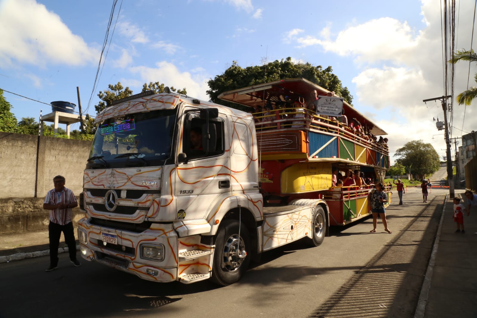 Dona Maria José da Conceição levou a neta Lara Kelly Muniz, 9 anos, estudante da Escola Lourival Oliveira Soares, em Ferradas, para o passeio no Trenzinho da Alegria que percorreu várias ruas e localidades da cidade. Ela e a criança estavam empolgadas para participar do passeio e por receber o carinho das pessoas que acenavam e algumas delas jogavam beijinhos durante o itinerário.