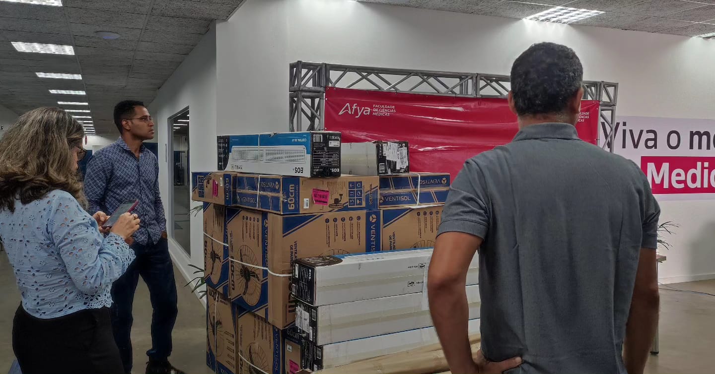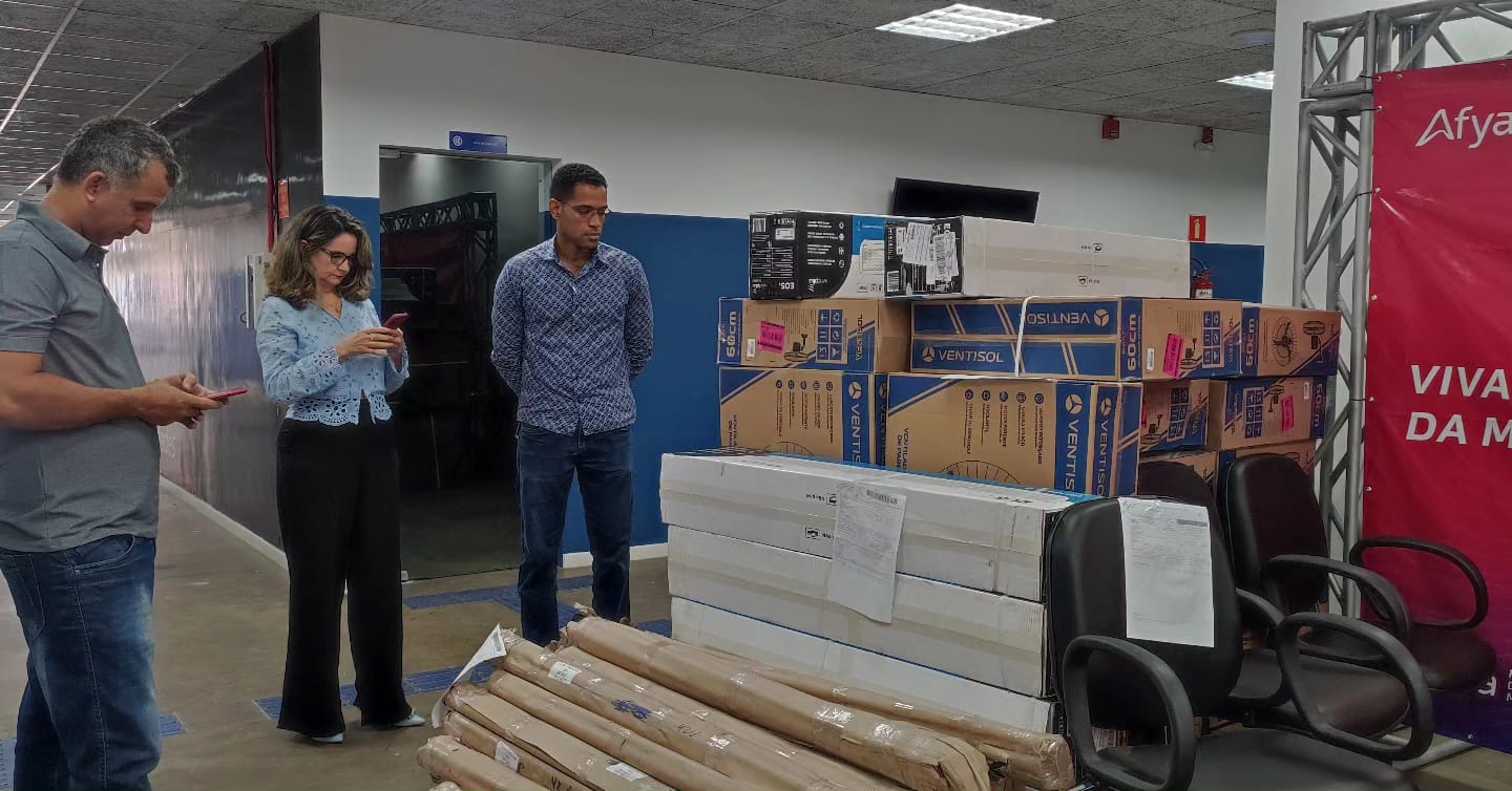 Dentre os equipamentos recebidos estão cadeiras, ventiladores, cortinas de ar, bastão com carga de 1kg, frigobar, dentre outros.
