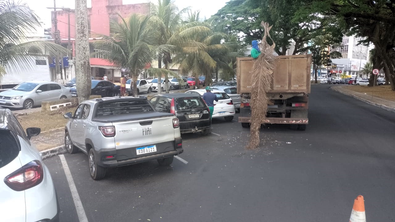 Outras equipes também trabalharam na coleta dos resíduos da limpeza de ruas e poda de árvores. Na Alameda da Juventude e na Beira-Rio, esse trabalho resultou na retirada de várias caçambas de lixo e restos de vegetação.