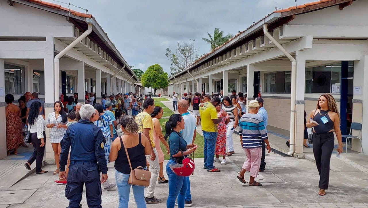 Legenda: 1. Eleição dos conselheiros movimentou as seções de votação, a exemplo do CIEBTEC, no São Caetano. 2. Presidente do CMDCA, Maria D’Ajuda Cavalvanti Lucas, titular da SEMPS, Josué Brandão Junior, e prefeito Augusto Castro em solenidade. Fotos Arquivo.