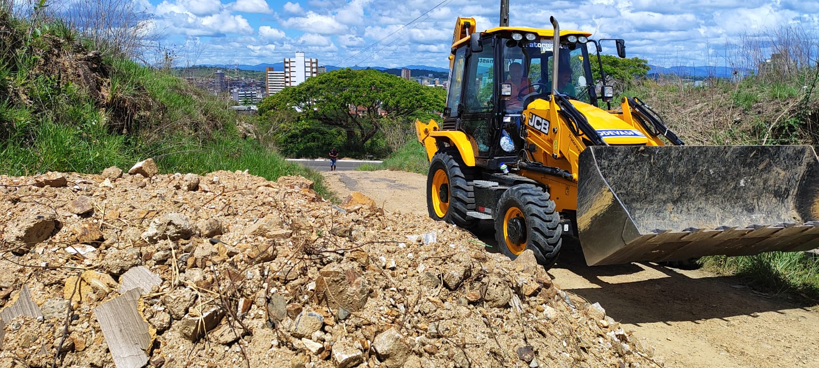 Outro local que recebeu serviços de infraestrutura nesta sexta-feira foi a Rua A, no Parque Florestal Góes Calmon. Na localidade retroescavadeira e homens da Prefeitura deram início à terraplanagem para posterior cascalhamento e patrolamento.