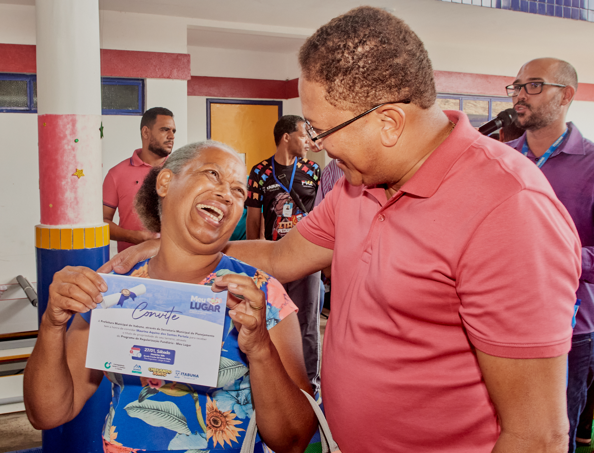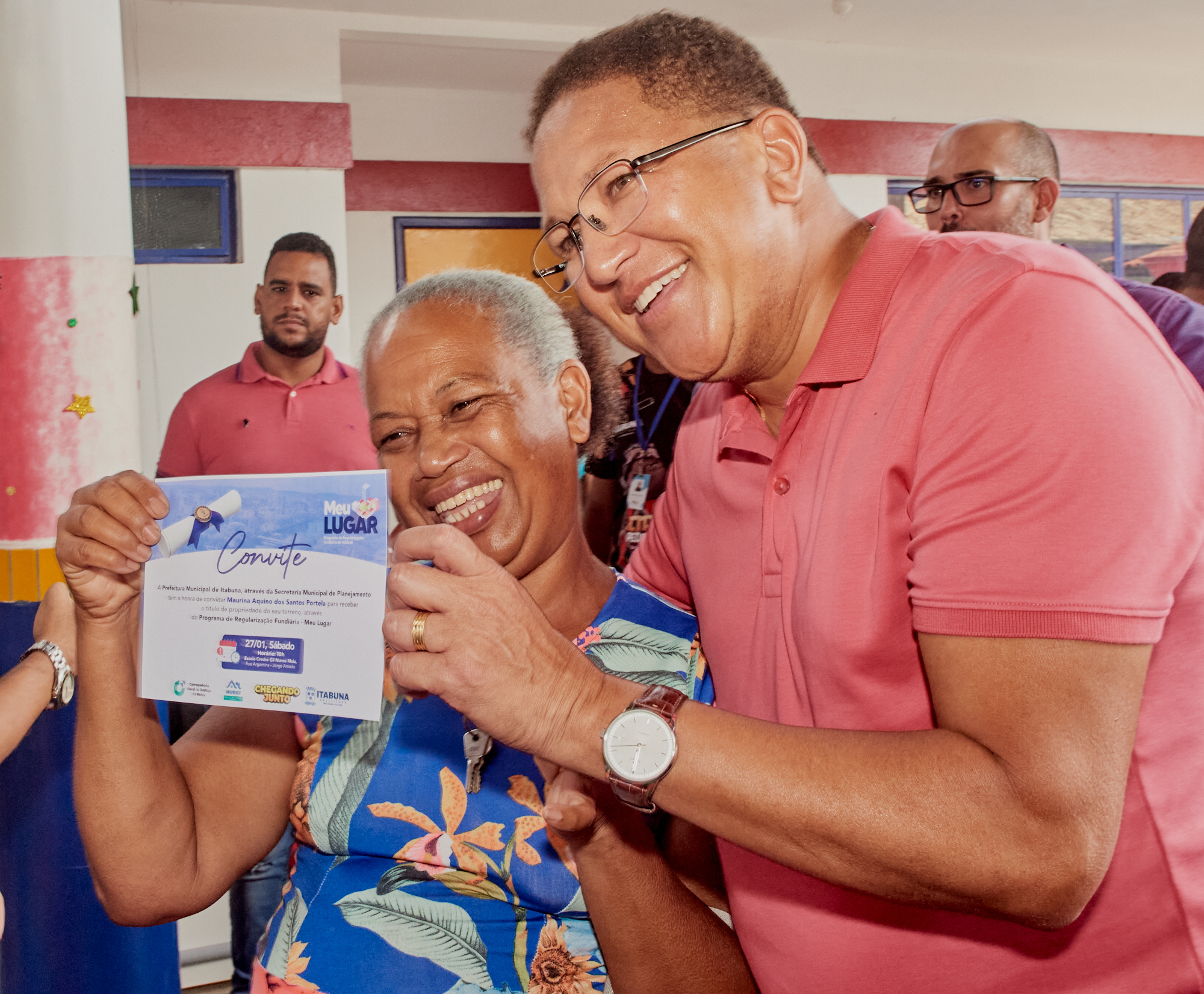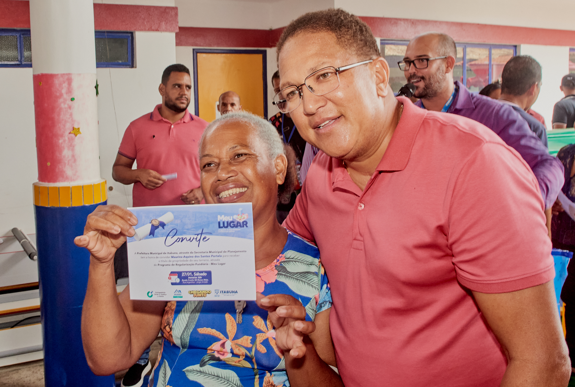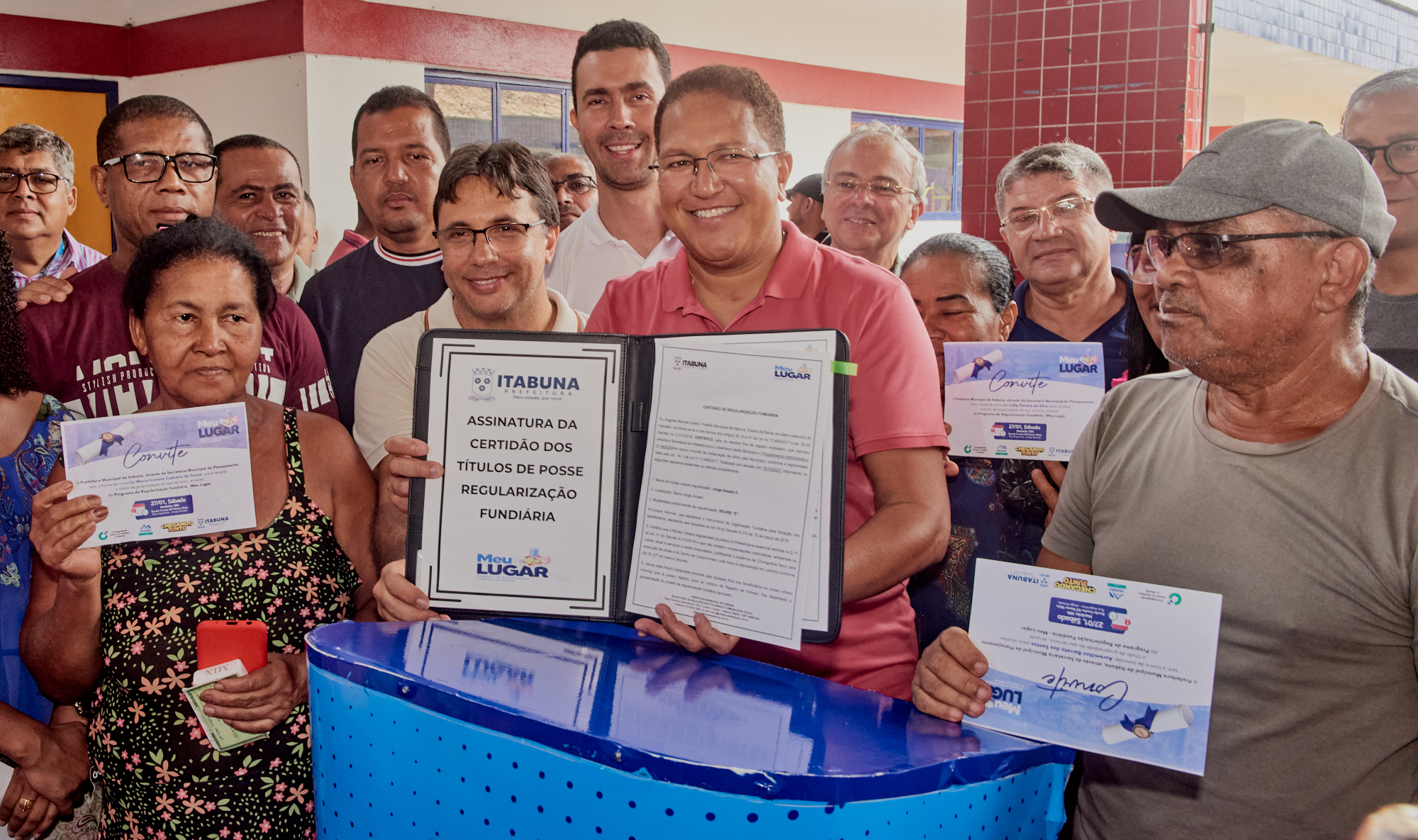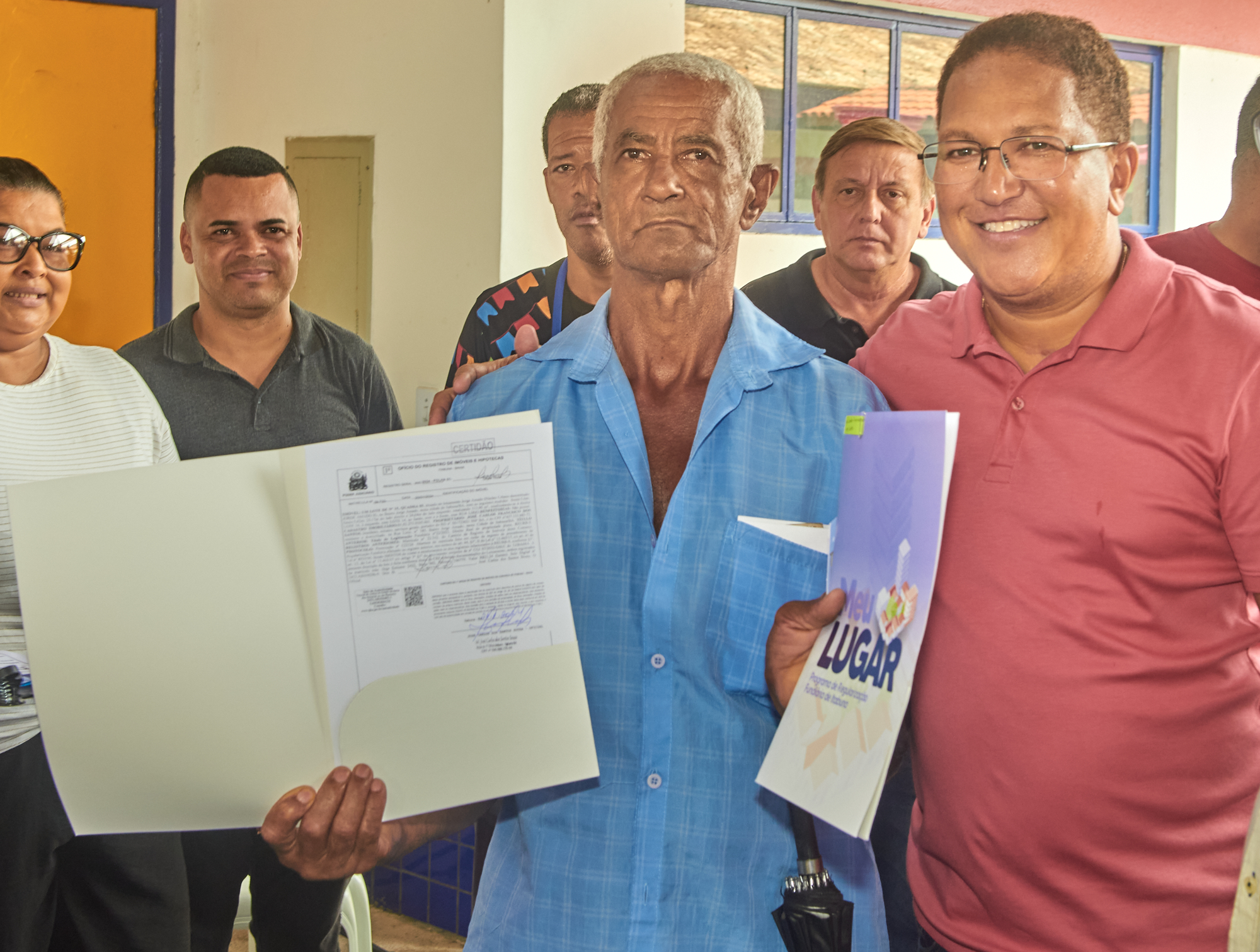 “Estou muito satisfeito. Graças a Deus sou dono de minha casa”. Disse o idoso José Carlos Francisco dos Santos a receber o título de propriedade das mãos do prefeito de Itabuna, Augusto Castro (PSD) na solenidade de entrega de mais 104 títulos de propriedade a moradores do Bairro Jorge Amado, na zona oeste da cidade. O Programa de Regularização Fundiária Meu Lugar é coordenado pela Secretaria de Planejamento (SEPLAN).
