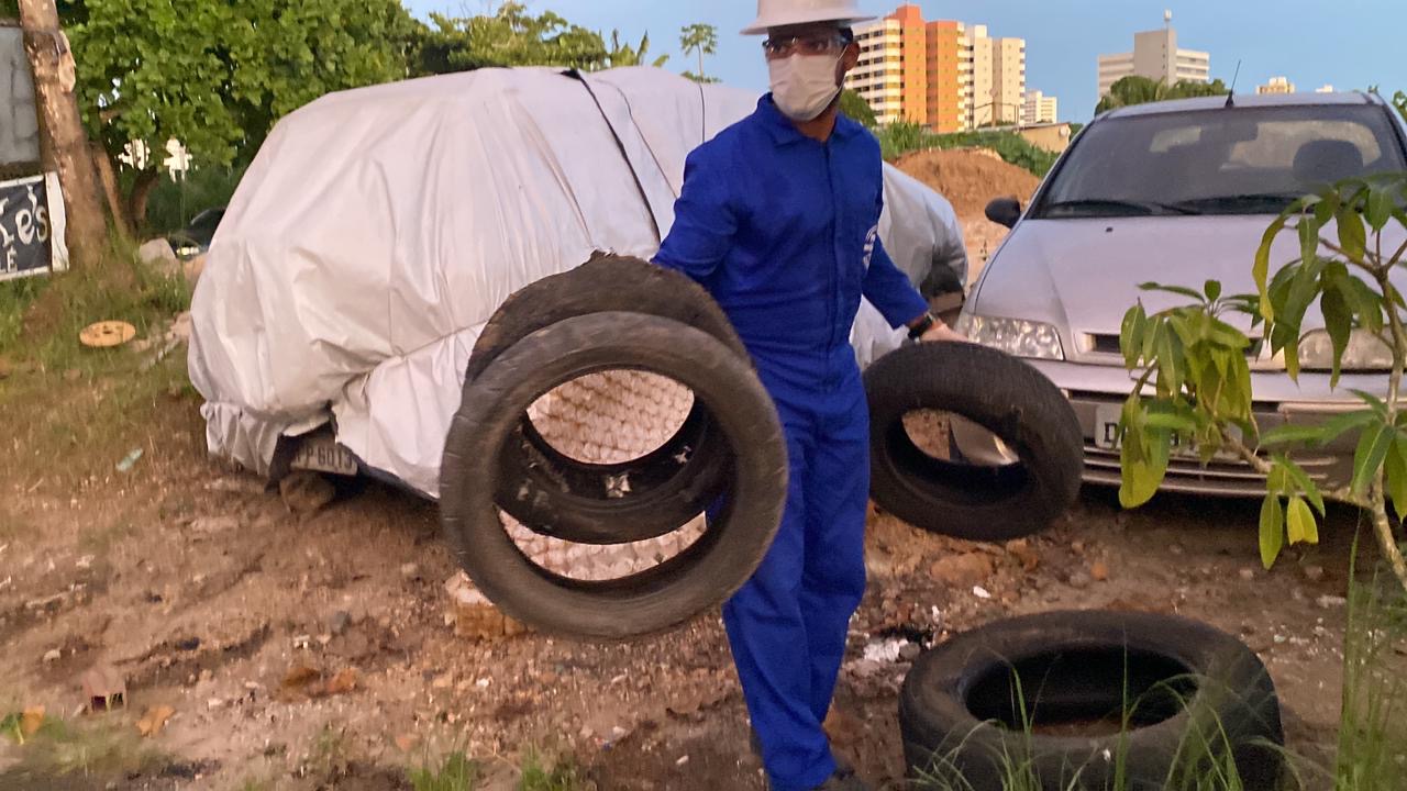 De acordo com o supervisor de Combate às Endemias, Clodoaldo Santos de Oliveira, no local também foi realizado o recolhimento de 120 pneus descartados em local inadequado.