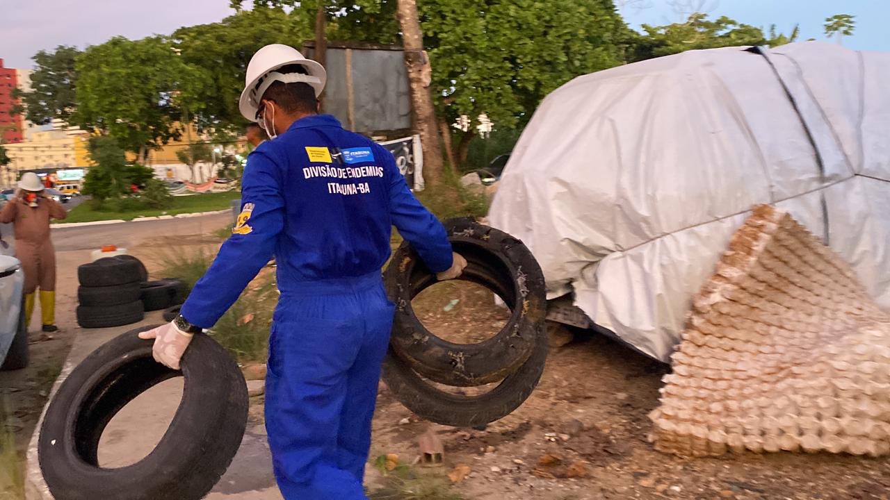 A Prefeitura de Itabuna esta realizando um trabalho intensivo de prevenção ao mosquito Aedes aegypti com a coleta de pneus usados em áreas baldias em borracharias e por meio de medidas educativas junto à população. Por isso, os Agentes Comunitários de Saúde (ACS) e de Combate às Endemias (ACE) estão nas ruas durante todo o dia.