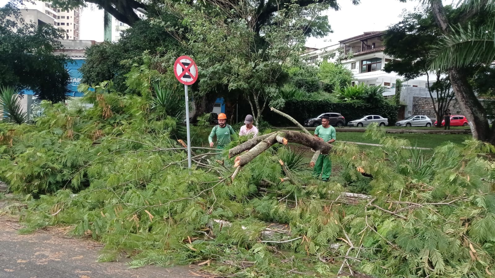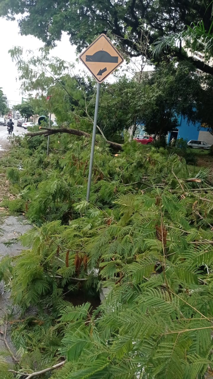 Em paralelo ao trabalho de atendimento às chamadas, o Departamento de Limpeza Pública intensificou a limpeza de bueiros, canais e poda de árvores, com especial atenção para os bairros Maria Pinheiro e Vila Anália e na Avenida Félix Mendonça, onde galhos de árvores caíram com os fortes ventos sobre calçada da Praça Celso Fontes Lima.