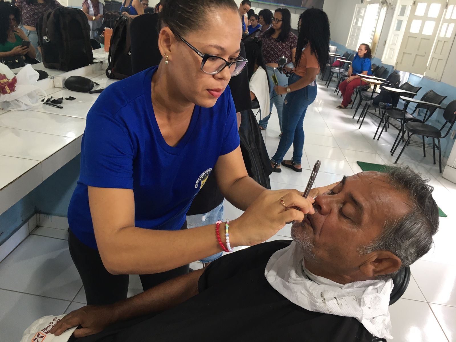 “Ave-Maria, aqui é demais, é top! Aqui cortam meu cabelo e agora, estou fazendo a barba também. Os alunos tratam muito bem a gente e já podem até botar seu próprio negócio.” O depoimento é do senhor Ademário José Marques dos Santos, 60 anos, morador do Vale do Sol.