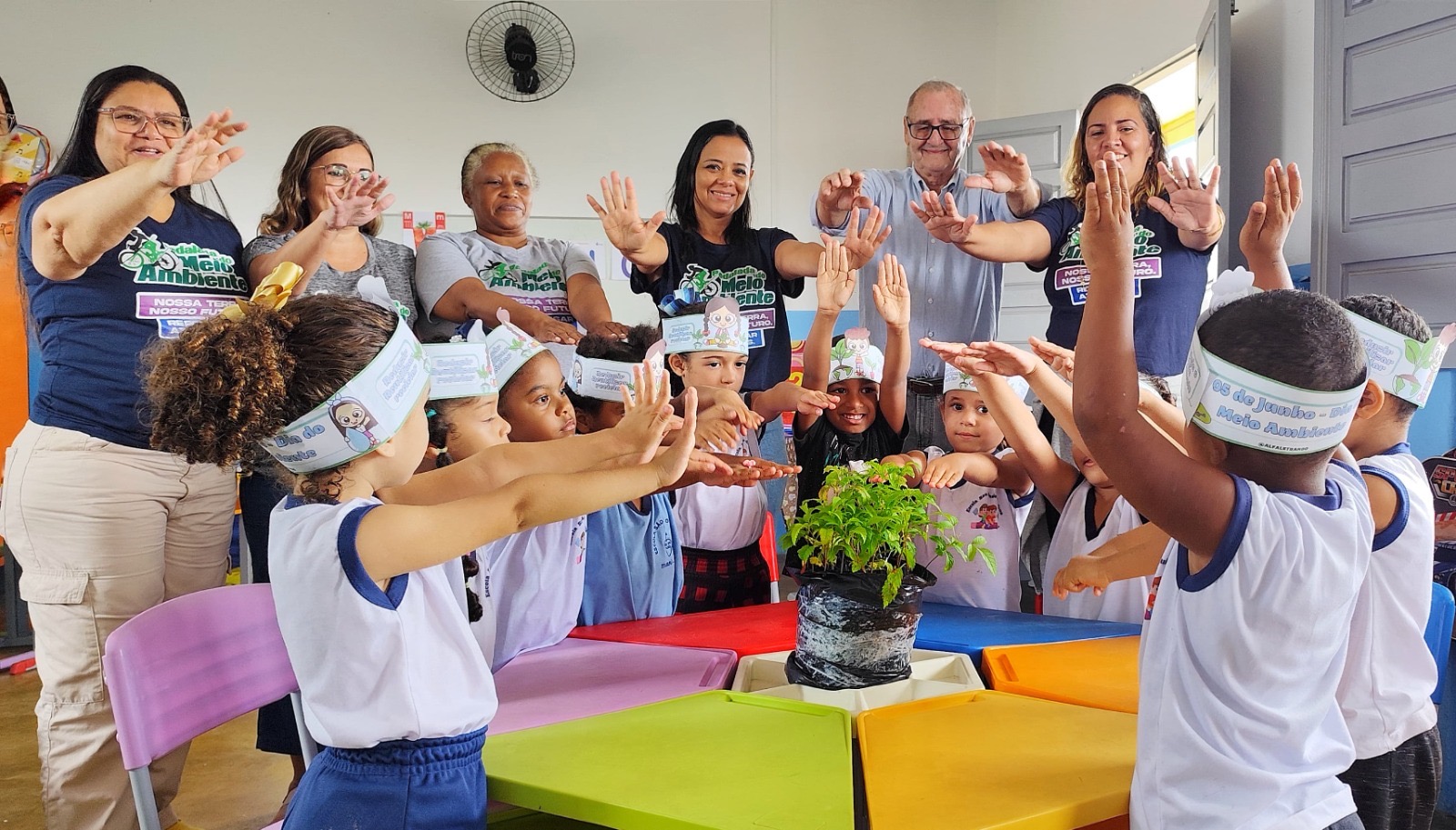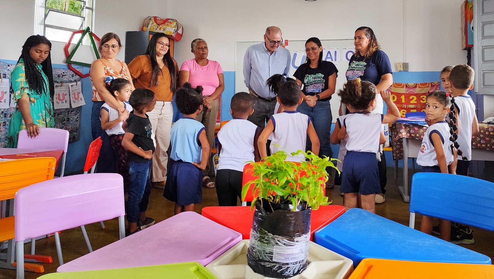 “Vocês podem ajudar a tomar conta do meio ambiente, ensinando os papais, mamães e seus amiguinhos a cuidarem também da natureza para termos uma cidade bonita e todos com saúde”, disse uma das educadoras.