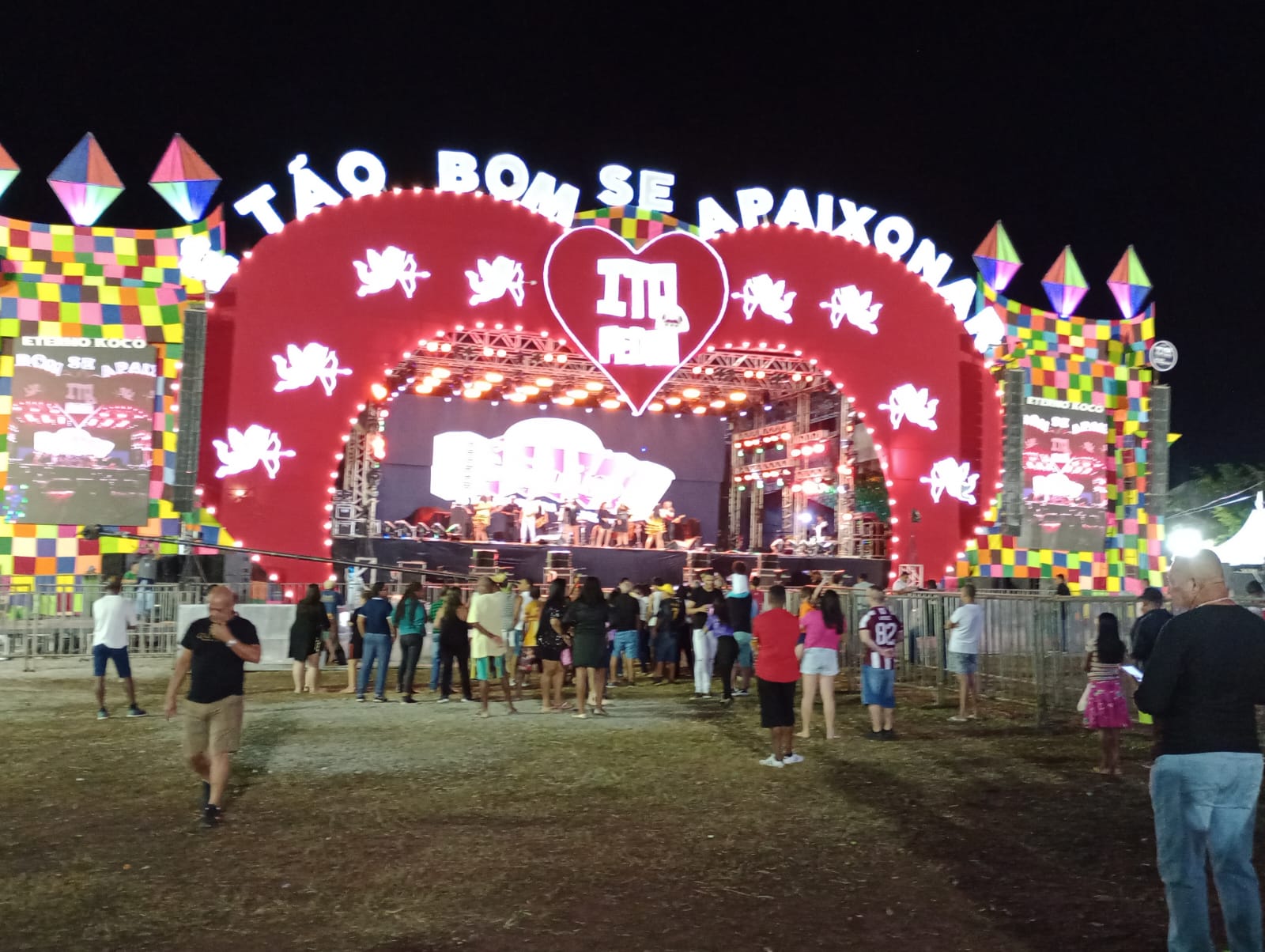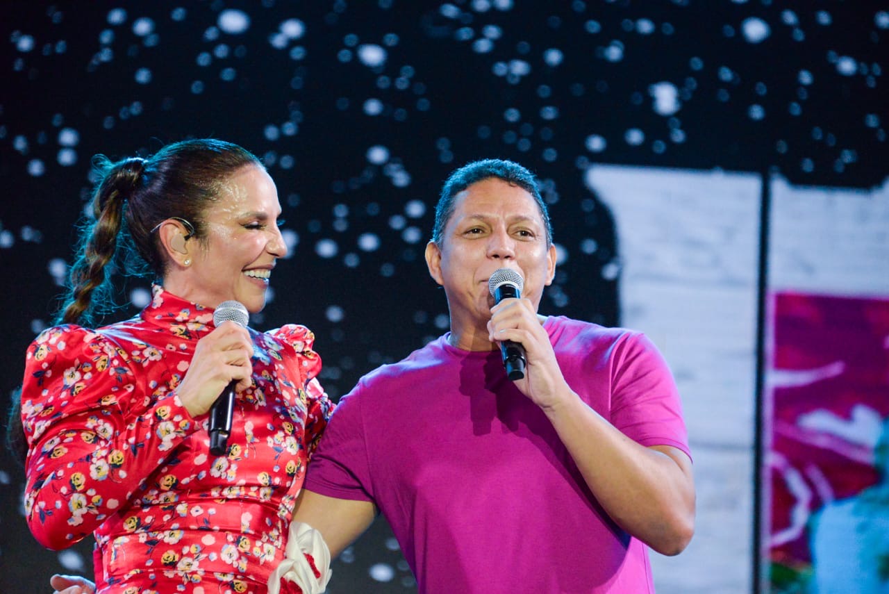 O público cresceu exponencialmente com a chegada do horário de apresentação do furacão Ivete Sangalo. Todo mundo ansioso pela cantora que subiu ao palco com um vestido vermelho coração.