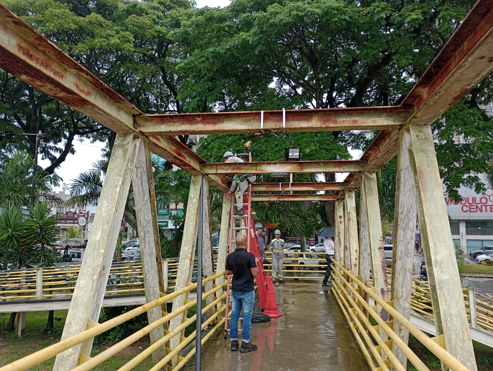 Legenda: Inaugurado em janeiro de 2018, a Passarela carecia de reparos devido à ferrugem de suas estruturas – Fotos Ascom