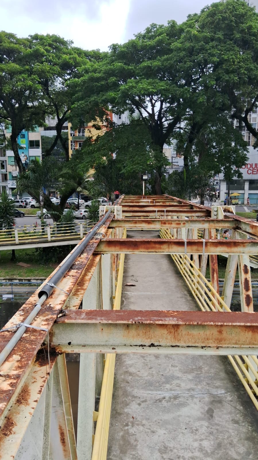 Legenda: A Passarela necessitava de reparos devido à ferrugem de suas estruturas, como nas imagens – Fotos Ascom