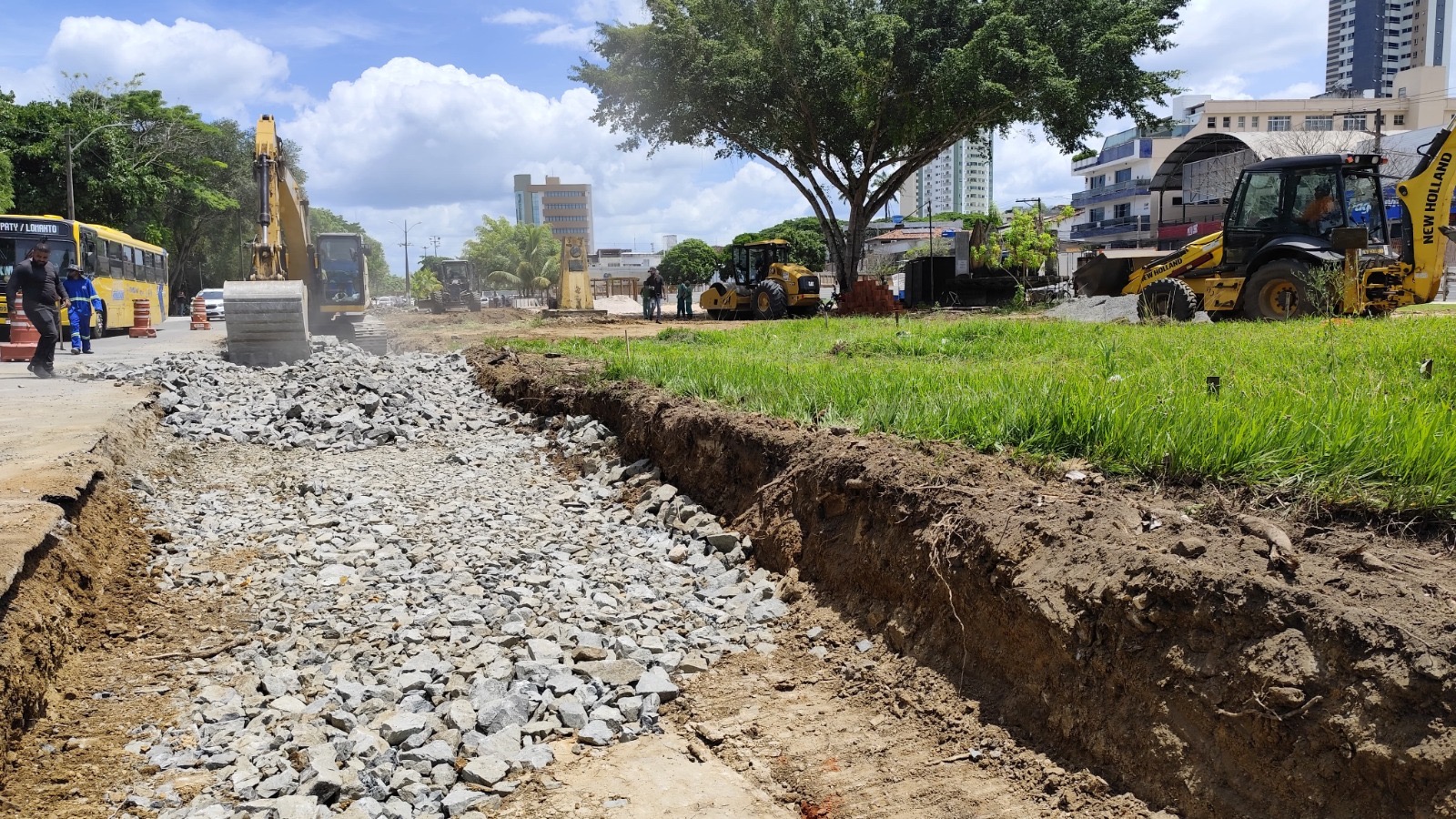 Legenda: Prefeitura conclui obras do retorno viário no complexo esportivo da Praça Hélio Lourenço da Silva, no Góes Calmon – Fotos Pedro Augusto.