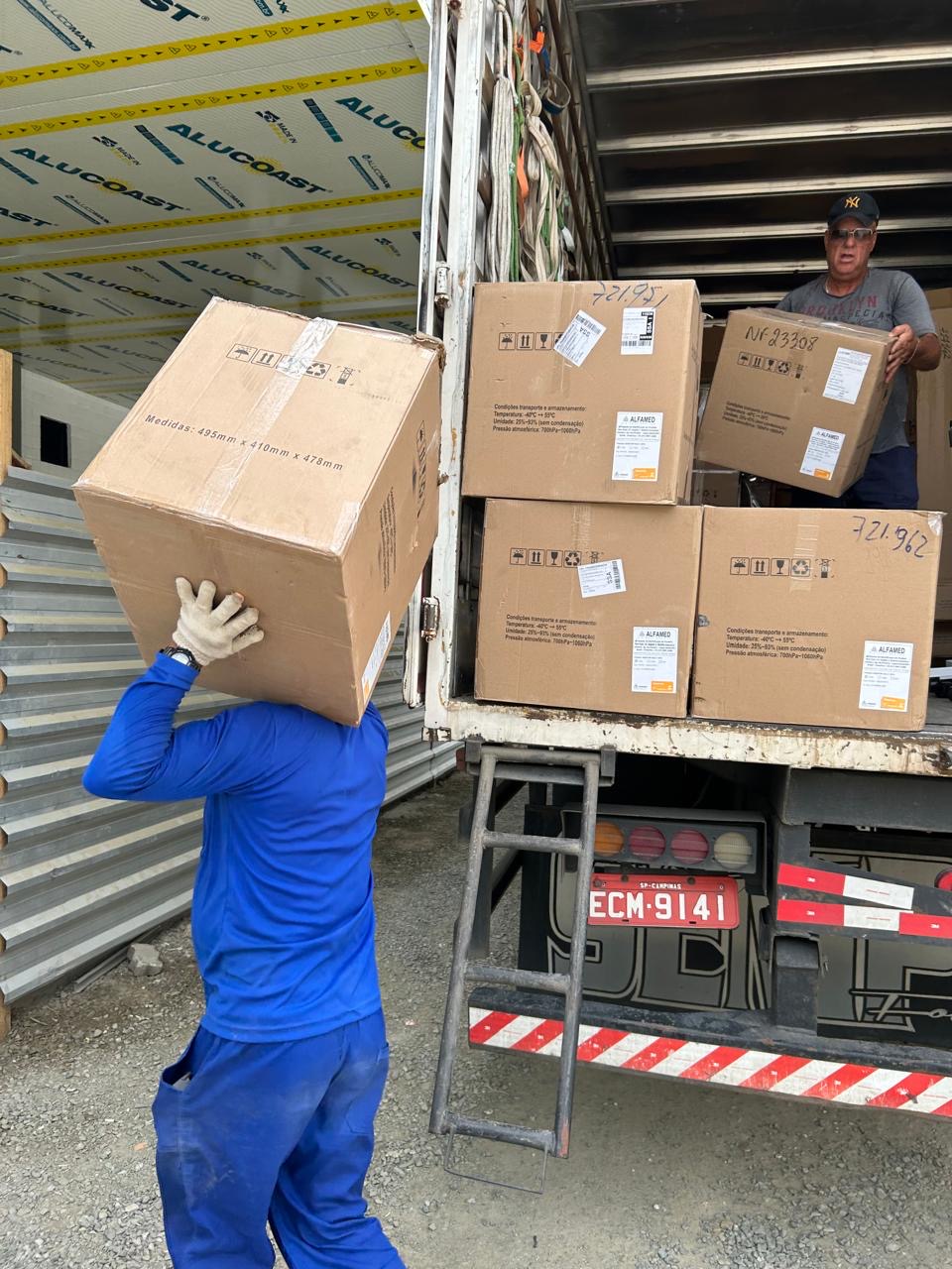 Dentre os diversos equipamentos descarregados, se destacam: carrinhos de anestesia, focos cirúrgicos de teto, monitores multiparamétricos e ventiladores pulmonares.