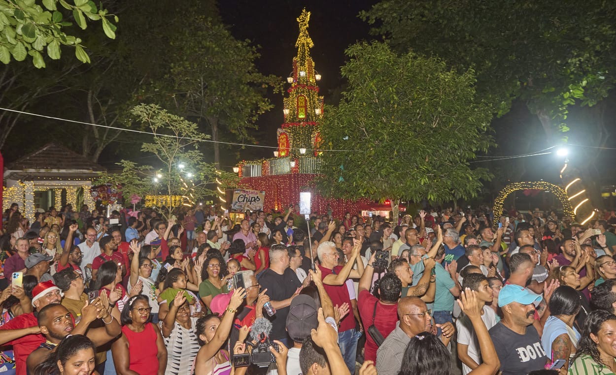Legenda: Centenas de pessoas prestigiaram a abertura do Natal de Luzes e Sonhos na Praça Olinto Leone. Fotos Pedro Augusto