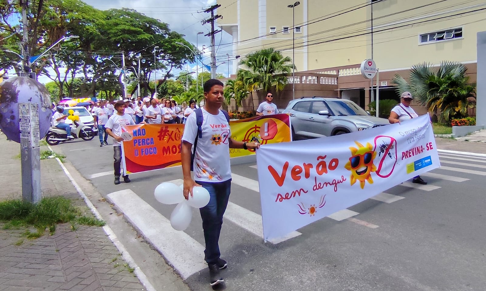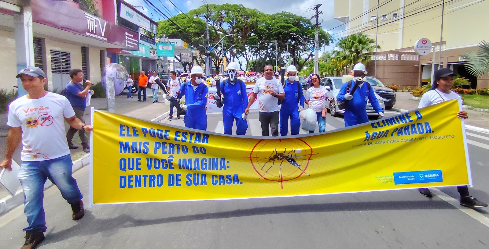 Para chamar a atenção da população e conscientizar as pessoas sobre os cuidados contra a proliferação do Aedes aegypti com a mudança de estação climática, a Prefeitura de Itabuna, por meio do Departamento de Combate às Endemias da Secretaria Municipal de Saúde, promoveu na manhã de hoje, dia 19, uma caminhada pela Avenida do Cinquentenário com a participação de Agentes Comunitários de Saúde (ACS) e de Combate às Endemias (ACE).