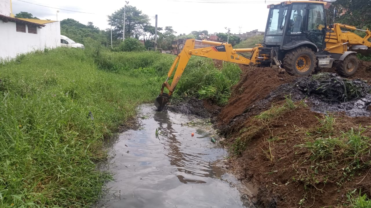 Legenda: Prefeitura de Itabuna executa da limpeza do canal de drenagem do Corbiniano Freire – Fotos – Secom -Prefeitura Itabuna
