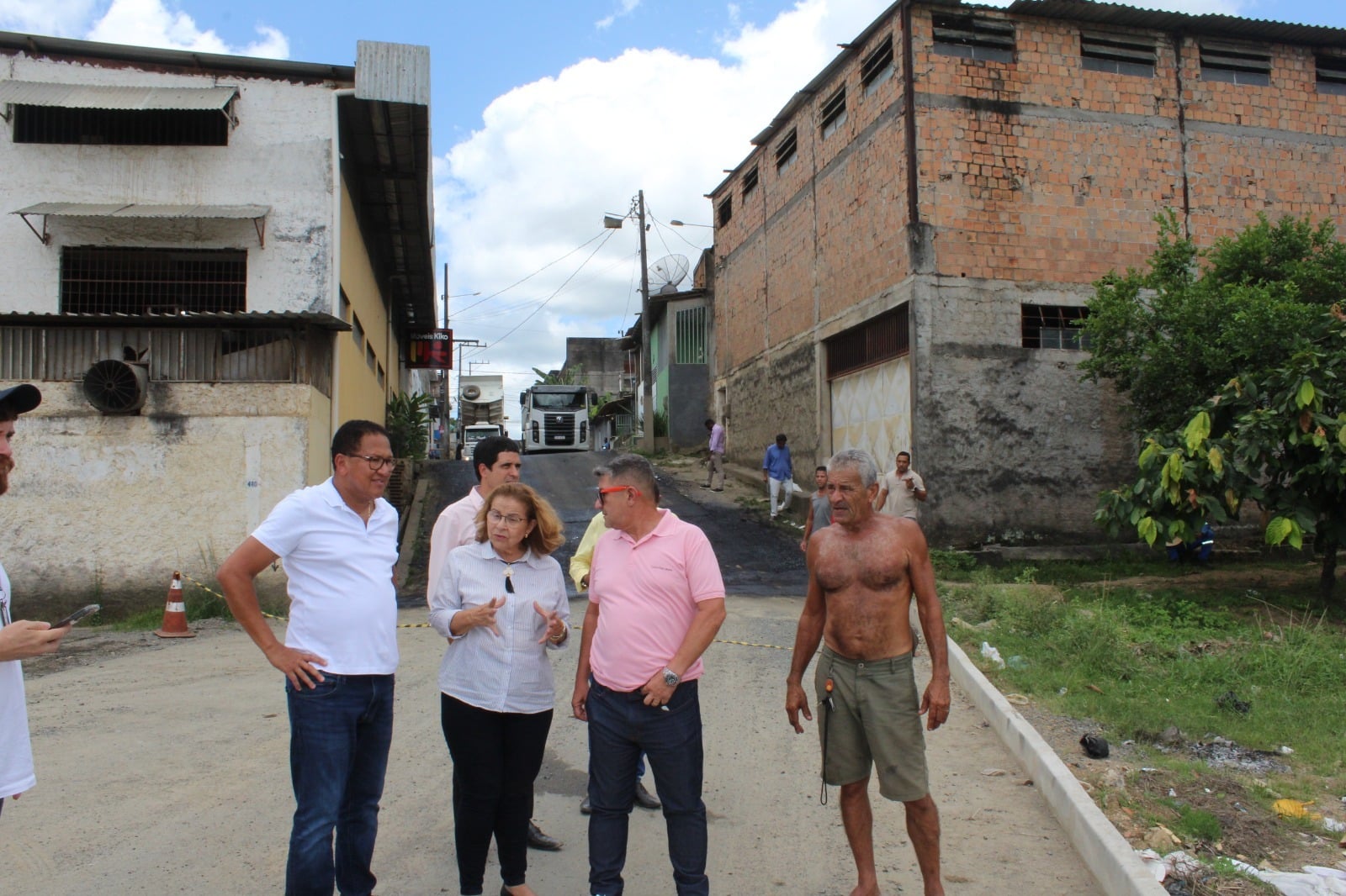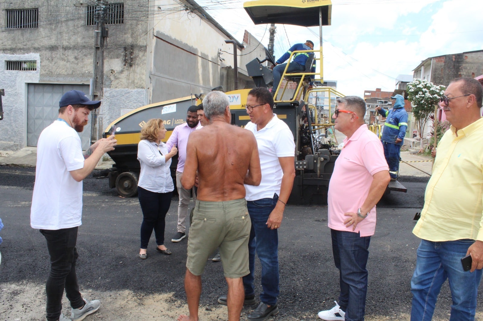 Legenda: Prefeito Augusto Castro visitou obras de pavimentação no Jaçanã – Fotos Secom – Prefeitura Itabuna.