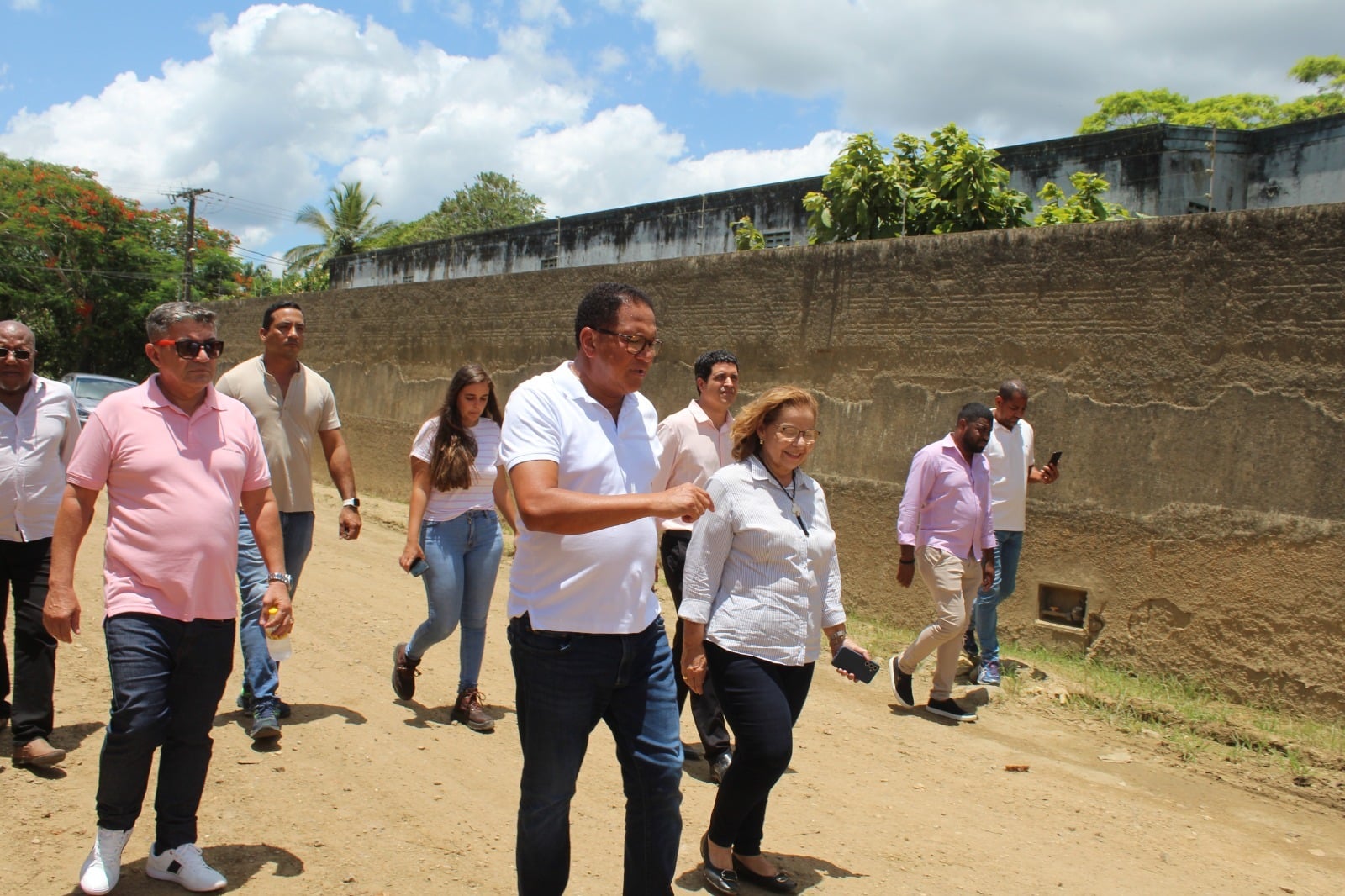 Legenda: Prefeito Augusto Castro, Sônia Fontes e autoridades visitam obras de pavimentação no São Judas Tadeu – Fotos Secom – Prefeitura Itabuna.