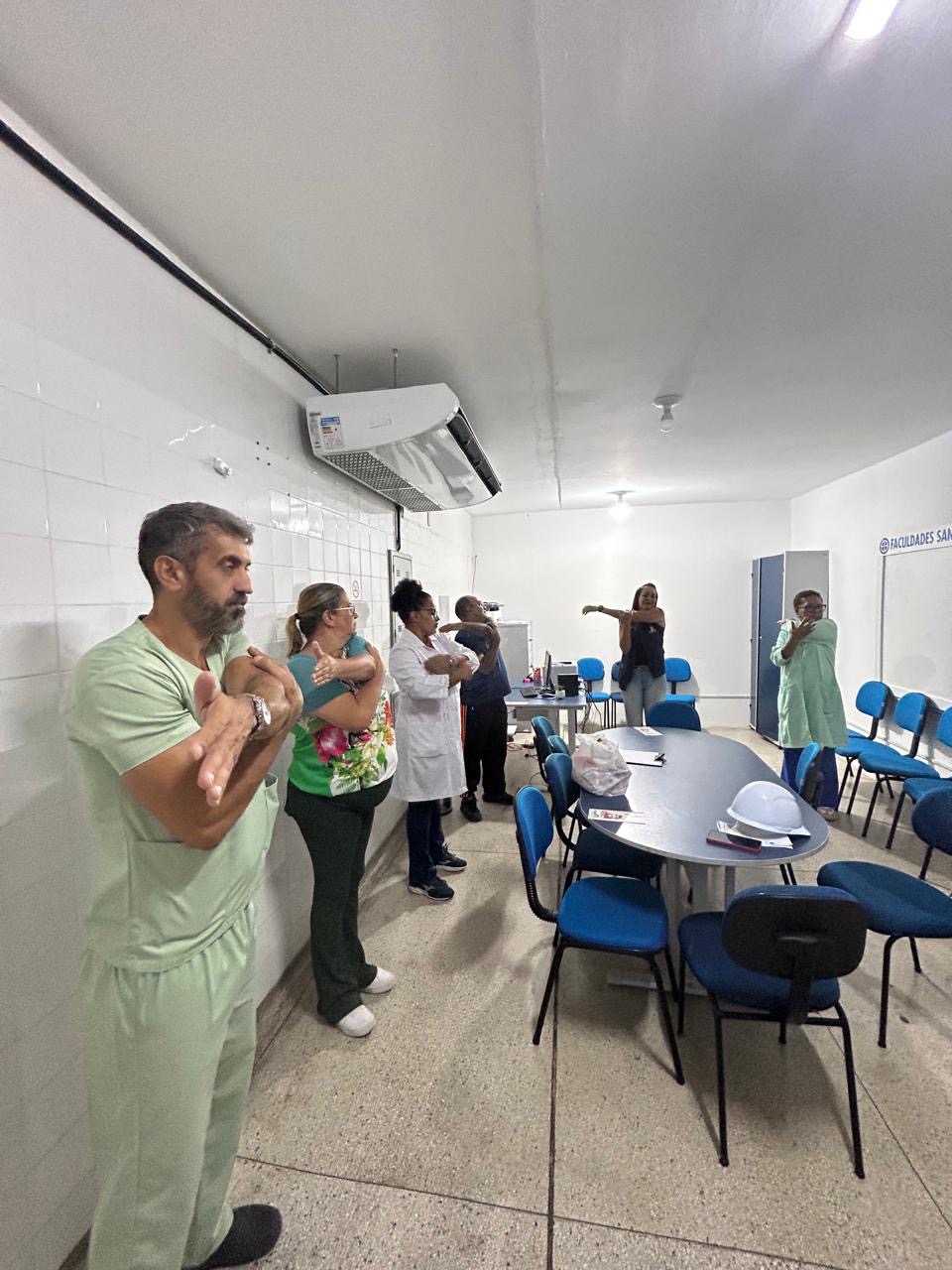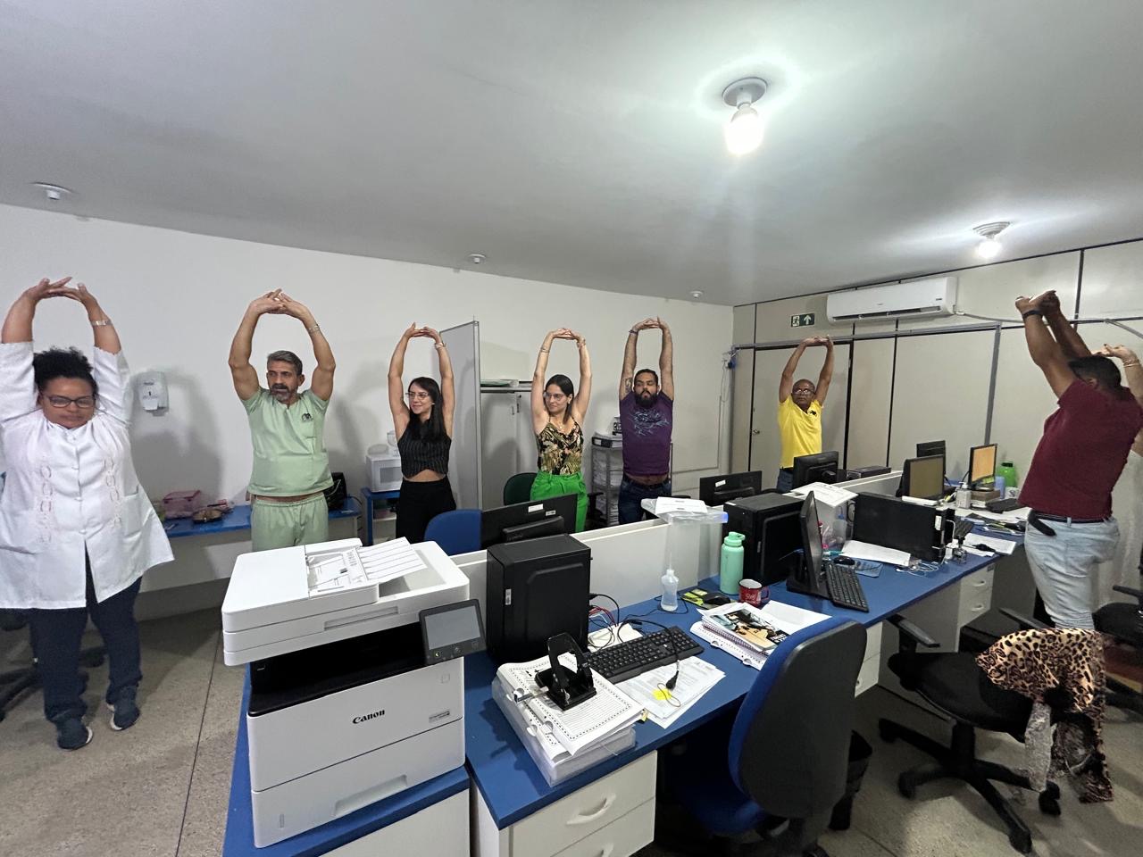 Legenda: Ação de combate às LER-DORT é realizada no Setor Administrativodo Hospital de Base – Fotos Secom – Prefeitura Itabuna .