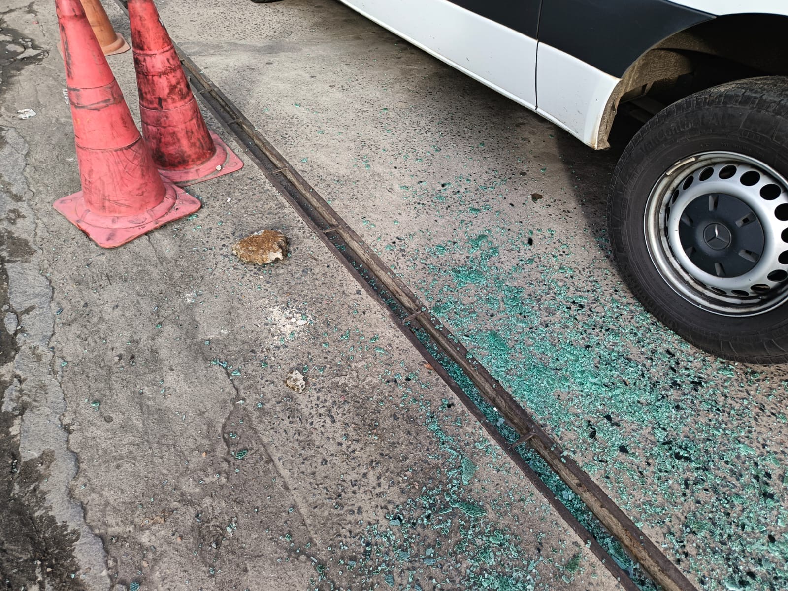 Legenda: Veículo utilizado no transporte de pacientes do TFD foi atacado e teve vidros quebrados. Fotos Secom – Prefeitura Itabuna
