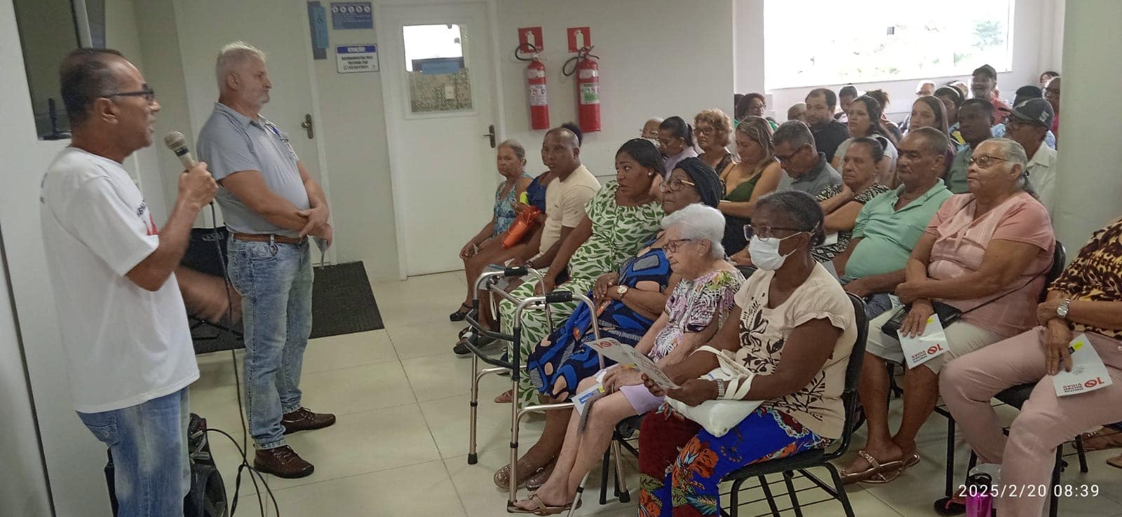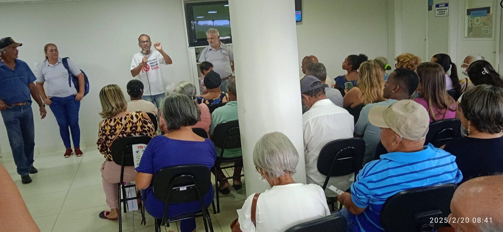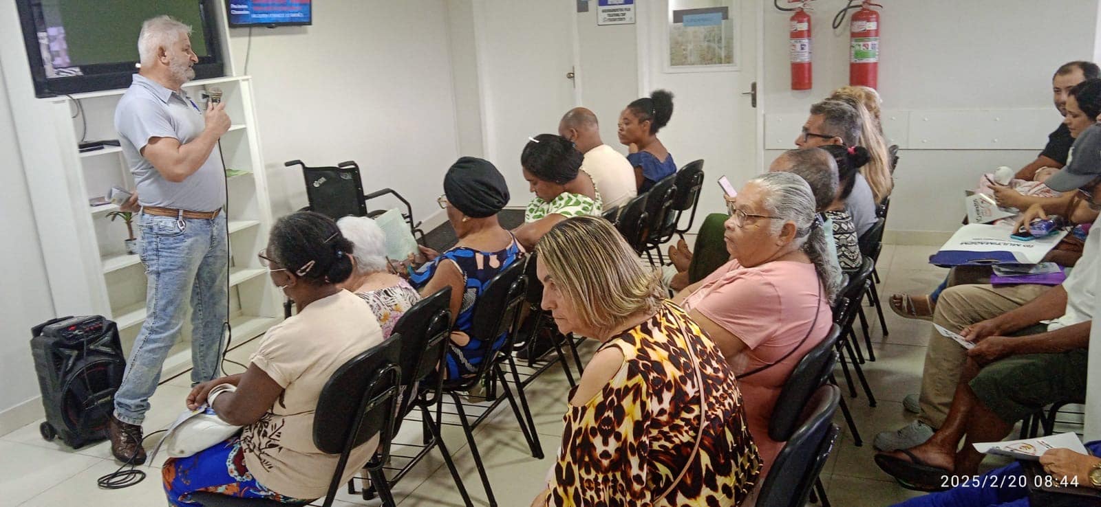 Legenda: Secretaria de Saúde de Itabuna realiza palestra sobre arboviroses para pacientes da Policlínica Municipal. Fotos – Secom – Prefeitura Itabuna.