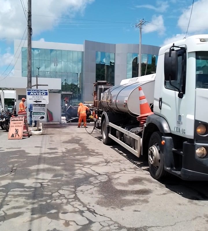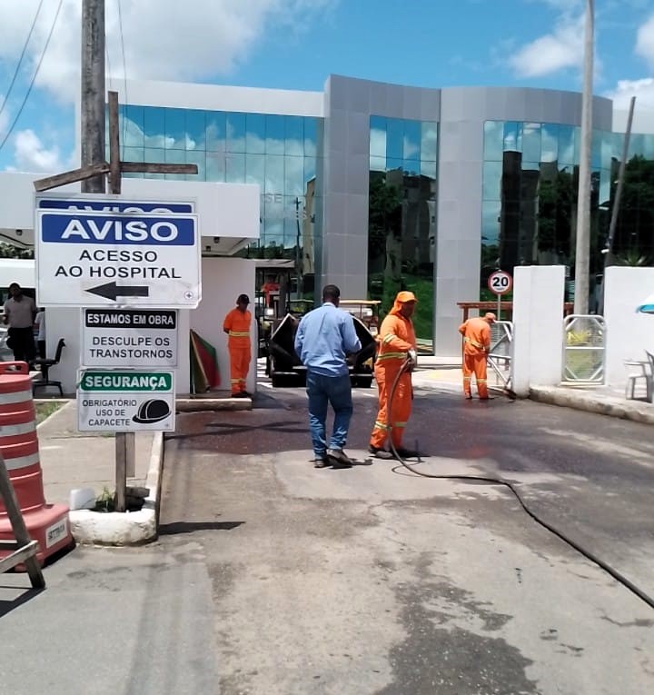 A manutenção do pavimento visa manter a segurança do tráfego veicular e facilitar o acesso às duas unidades hospitalares.