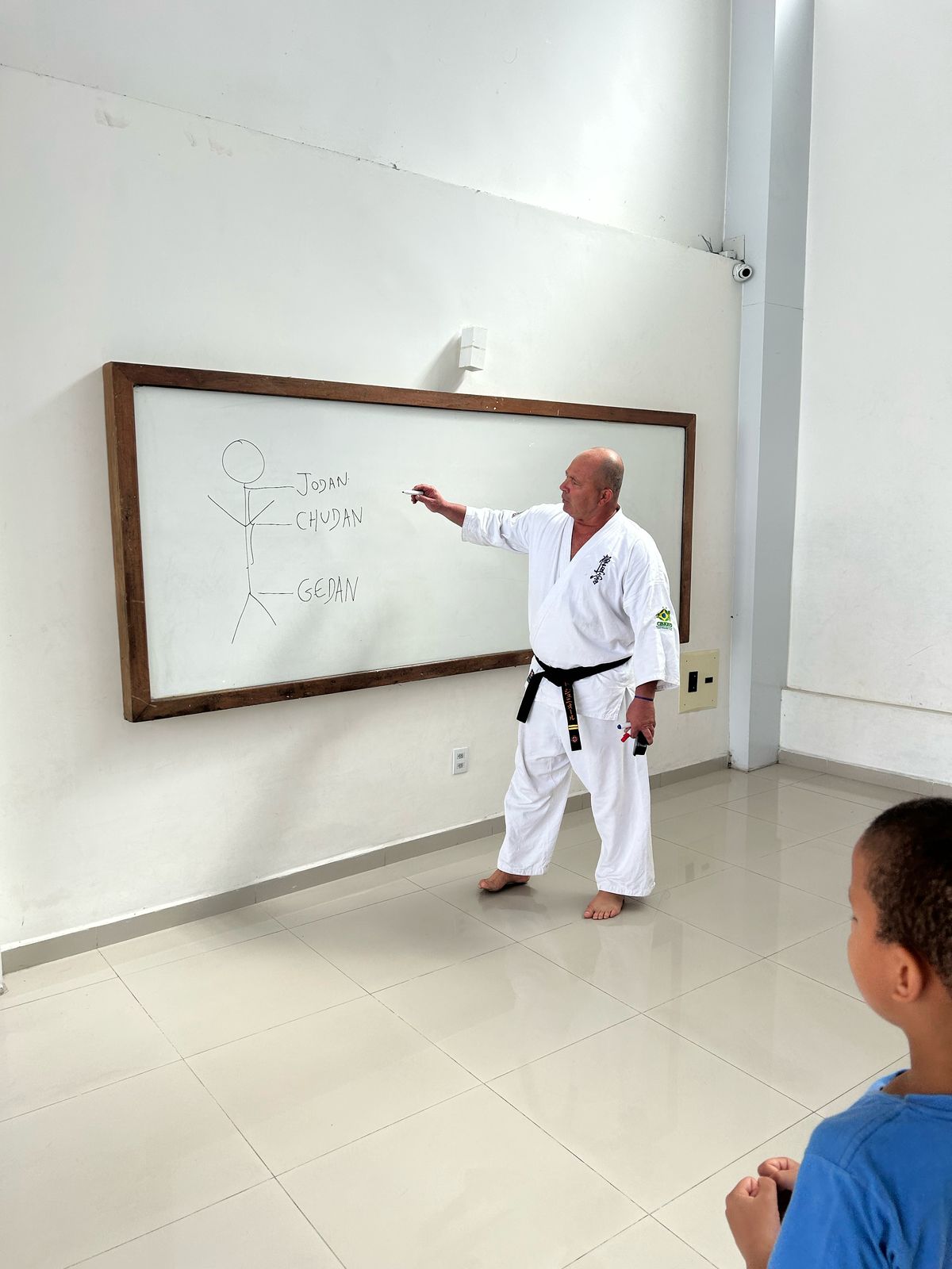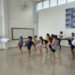 Na aula inaugural, além do Sensei Dinho, que é o professor do projeto, também estiveram presentes o presidente da Federação Baiana de Karatê Kyokushin, Sensei Teiji Amano, o Sensei Kika, 2º Dan, Senpai Pedro Meneses e a Senpai Ana Paula.