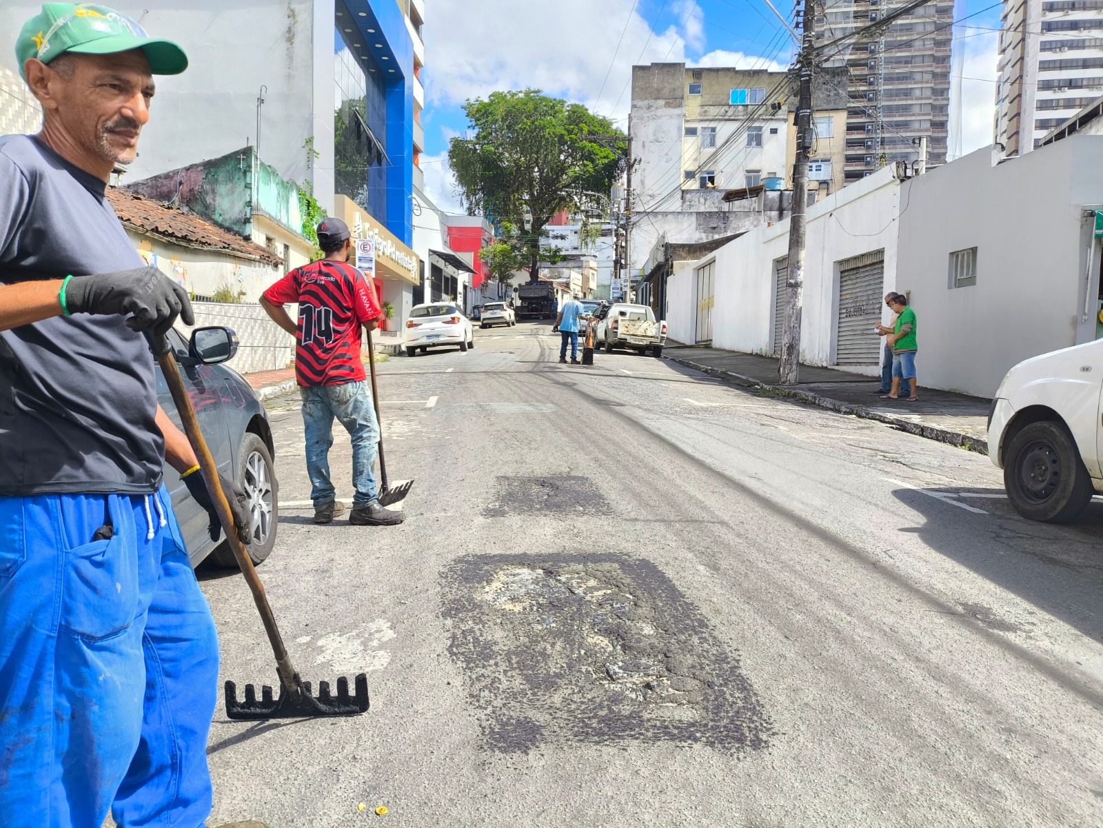 A equipe coordenada pelo superintendente de Serviços Públicos, Francisco de Sousa Lino Filho, prossegue com a Operação Tapa-Buracos na Rua Almirante Tamandaré, importante via com alto tráfego de veículos, e na Rua Almirante Barroso, no Centro.