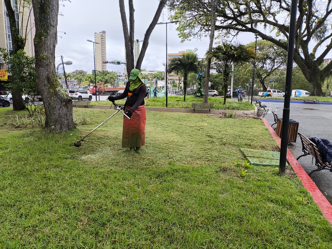 Praça bonita é praça limpa e segura. Serviços de zeladoria são fundamentais para a conservação dos espaços públicos, como roçagem, varrição e sacheamento (remoção de raízes nas rachaduras das calçadas). A Prefeitura de Itabuna, por meio da Diretoria de Limpeza Pública da Secretaria de Infraestrutura e Urbanismo (Siurb), tem cumprido esse papel com rigor.