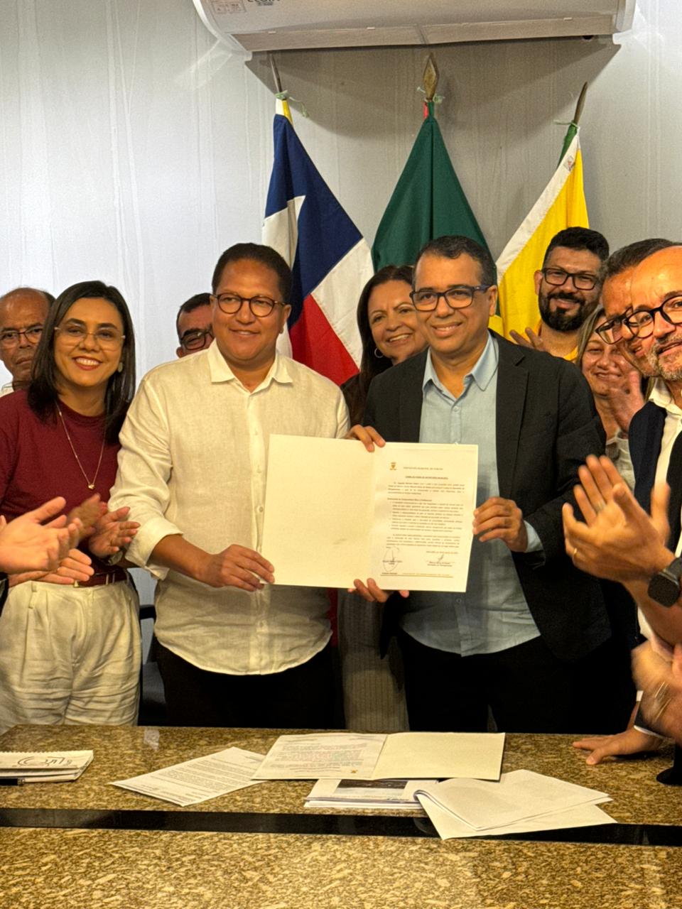 No final da tarde desta sexta-feira, dia 29, o prefeito de Itabuna, Augusto Castro (PSD), deu posse aos novos secretário de Planejamento, Marcos Alves de Sousa, Kiko, e ao superintendente de Emprego e Renda, Helin Duarte Sousa Batista, ambos do Partido Comunista do Brasil (PCdoB). A solenidade foi prestigiada pelo diretor da Rede Nacional de Ensino e Pesquisa do Ministério da Ciência Tecnologia e Inovação, Davidson Magalhães, e pelo secretário do Trabalho, Emprego, Renda e Esporte da Bahia, Augusto Vasconcelos, dentre outras autoridades.