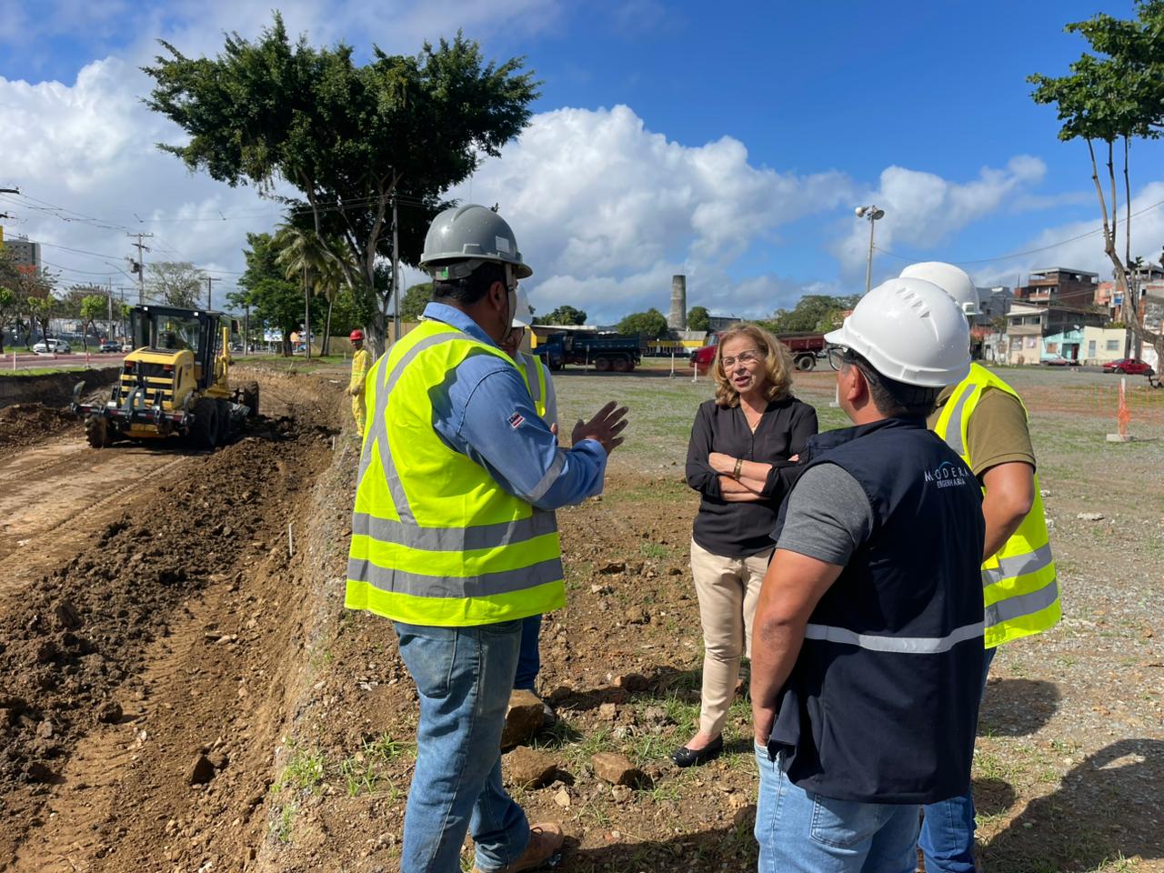 Além da análise minuciosa do solo, a secretária e os engenheiros da Prefeitura cobraram dos técnicos da Neoenergia Coelba a relocação de postes de energia, com o assentamento dos primeiros à direita da via, de forma a retirar os que atualmente estão no meio-fio e transferir a fiação.