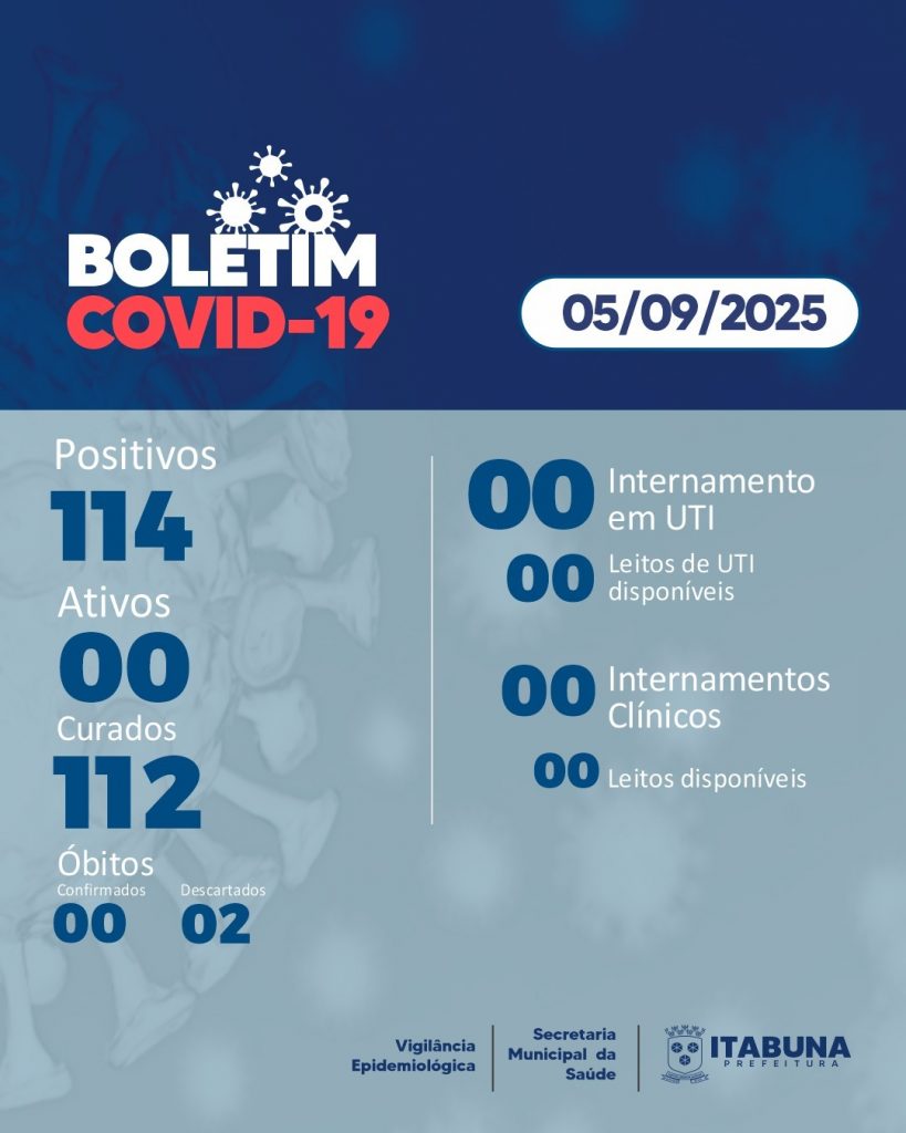 A Divisão de Vigilância Epidemiológica do Departamento de Vigilância em Saúde da Secretaria Municipal de Saúde divulgou hoje um novo Boletim do Covid-19 com base na Planilha 2024. De acordo com os dados, Itabuna registra 112 pacientes curados, 114 confirmados, sendo casos ativos; leitos em UTI ocupados 00; leitos de UTI disponíveis 00; internados em […]