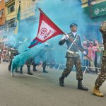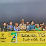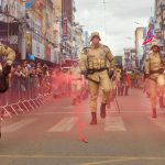 Acompanhado pelo comandante do 15º Batalhão da Polícia Militar, Tenente Coronel Robson Farias, o prefeito Augusto Castro (PSD) passou em revista as tropas n a Avenida Fernando Cordier, antes da solenidade de hasteamento das bandeiras do Brasil, Bahia e Itabuna e execução do Hino Nacional, no palanque oficial.