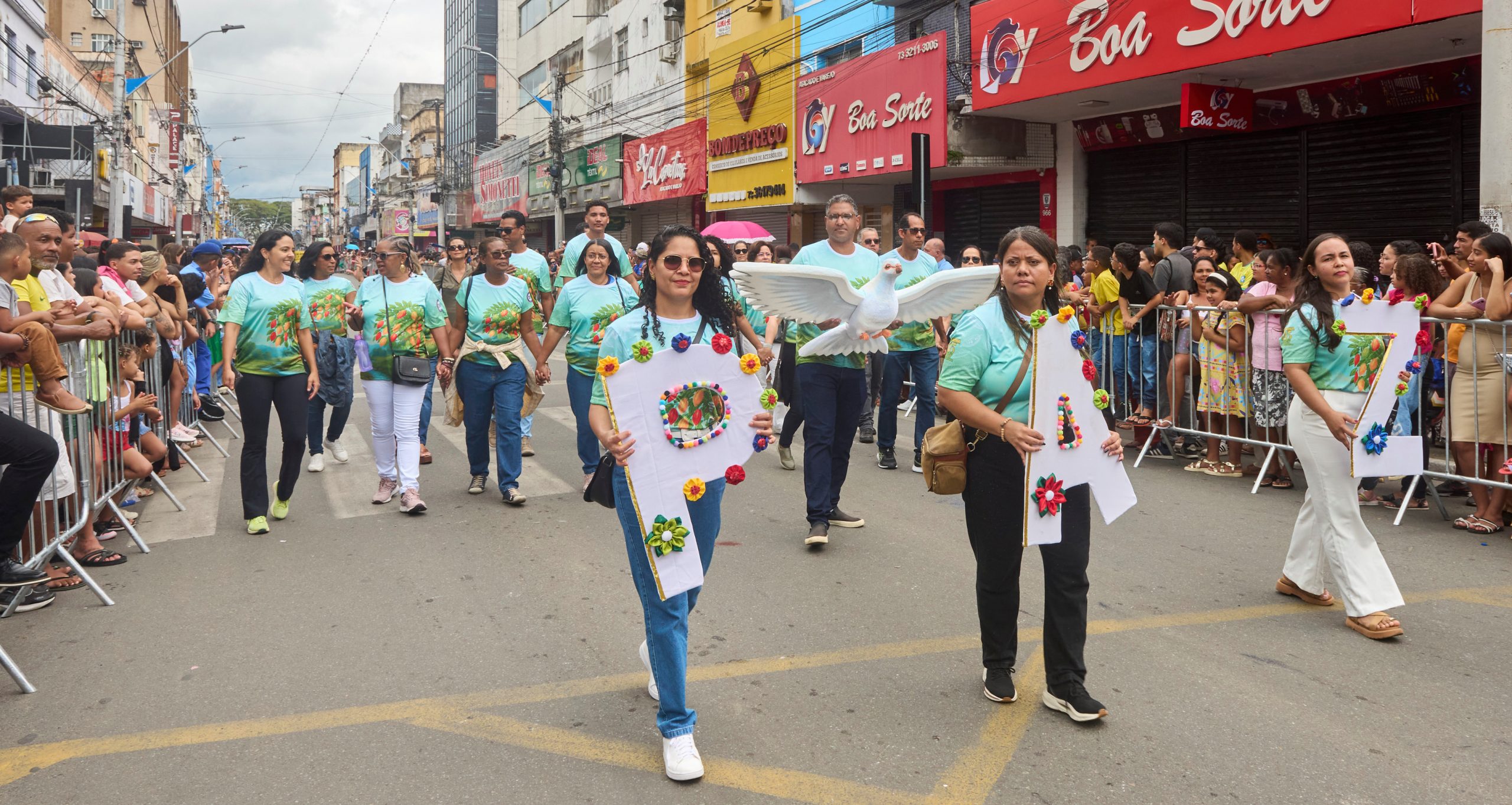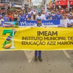 O tempo nublado, com alternância de sol e chuva fina, contribuiu para a temperatura amena ao longo do desfile dos grupos constituídos por escolas municipais como o Instituto Municipal de Educação Aziz Maron (IMEAM) – MCPM, Escola Municipal Flávio José Simões Costa – MCPM, Centro de Atenção Integral à Criança Jorge Amado (CAIC) – MCPM, Banda do Complexo Integrado de Educação Básica, Profissional e Tecnológico (CIEBTEC).
