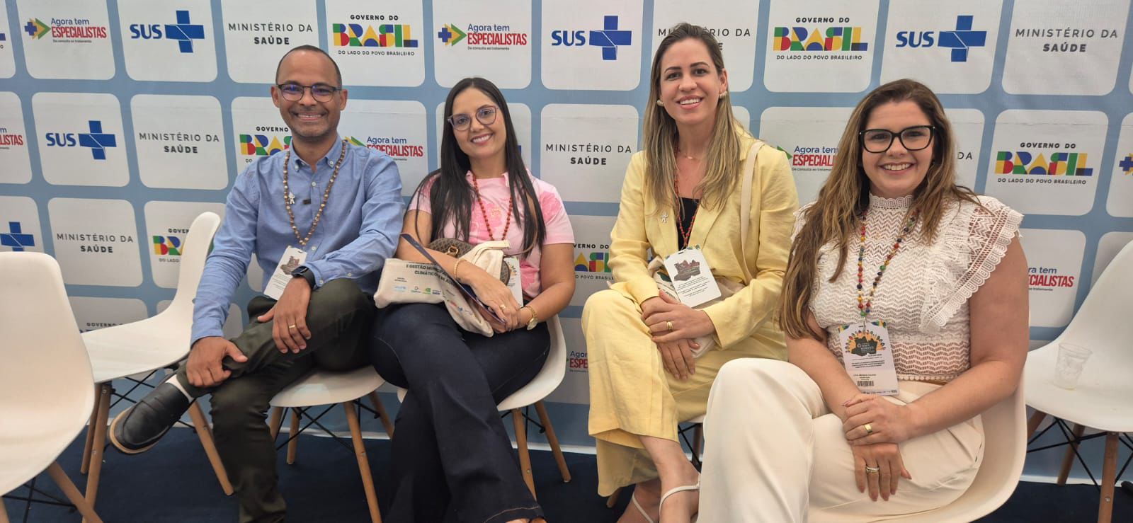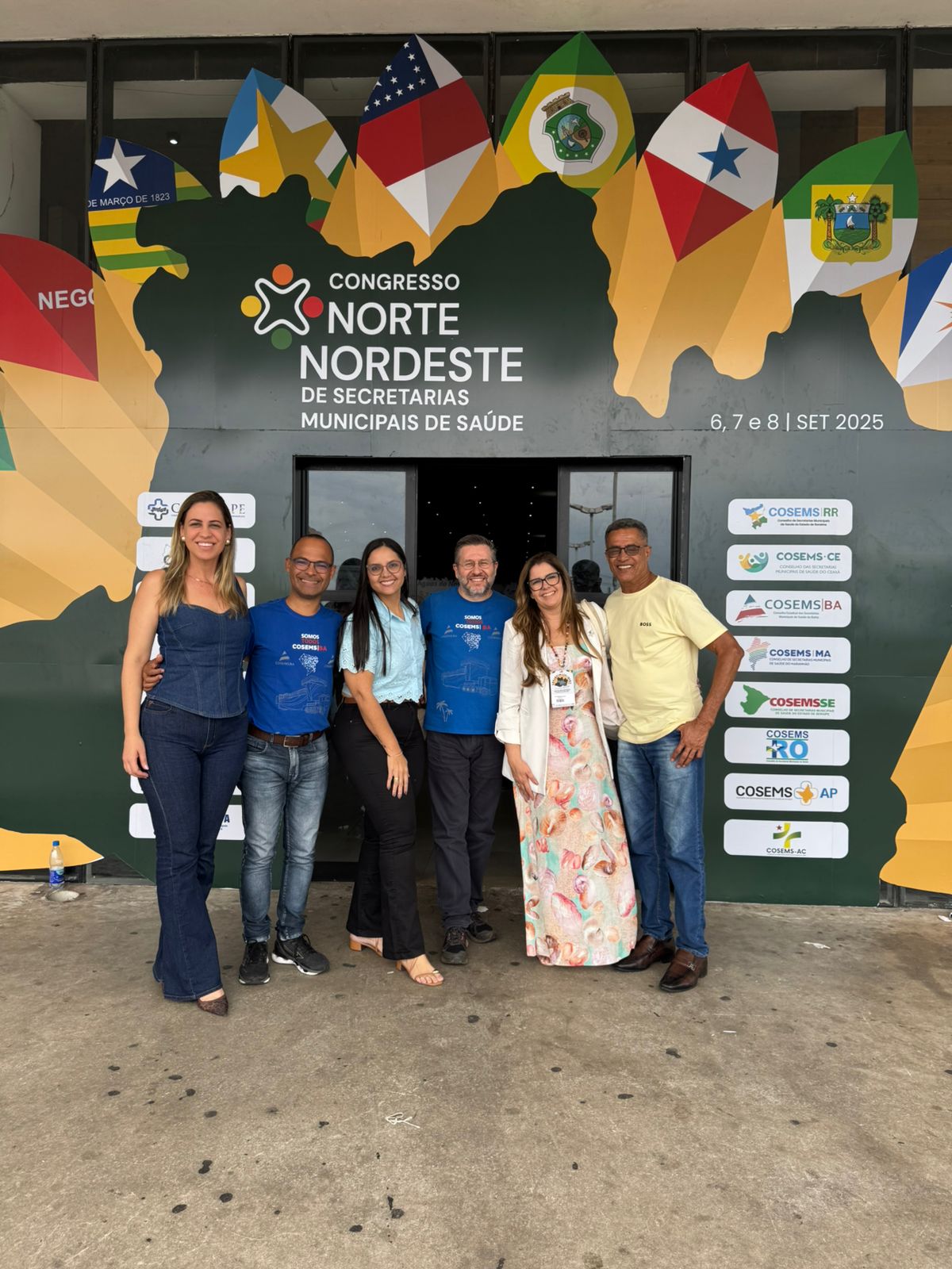 A secretária municipal de Saúde, Lívia Mendes Aguiar, acompanhada de técnicos, participou das palestras e mesas de discussão que tiveram como tema central “Do Norte ao Nordeste: Regionalização e a Gestão Municipal diante dos desafios das mudanças climáticas e do acesso à saúde”.