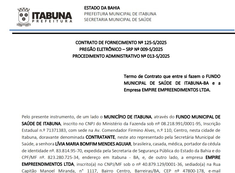 A Prefeitura de Itabuna, por meio da Secretaria Municipal de Saúde, informa que, para atender às demandas do Centro de Atenção à Mulher Mariana Domingas Santos (CAM), realizou o Pregão Eletrônico nº 009/2025, cujo objeto foi a contratação de materiais de consumo tipo penso – perfuro e correlatos, incluindo as agulhas necessárias à realização de procedimentos como punções.