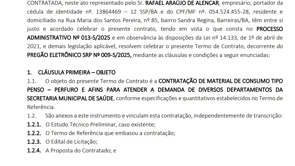 Após a homologação e assinatura do contrato com a empresa vencedora, sediada em Barreiras, verificou-se que a mesma não respondeu aos contatos administrativos necessários para o início do fornecimento, caracterizando descumprimento contratual.