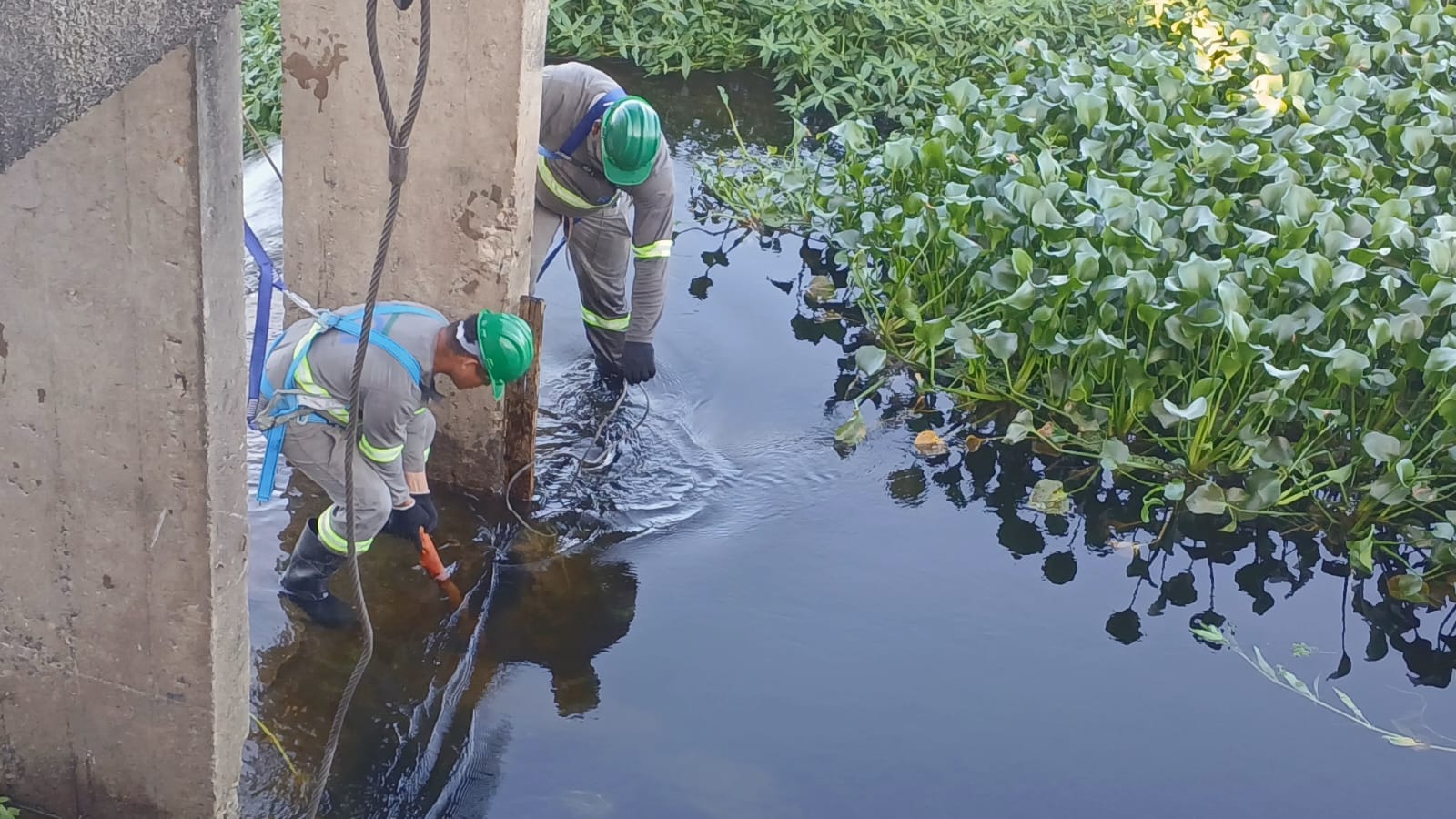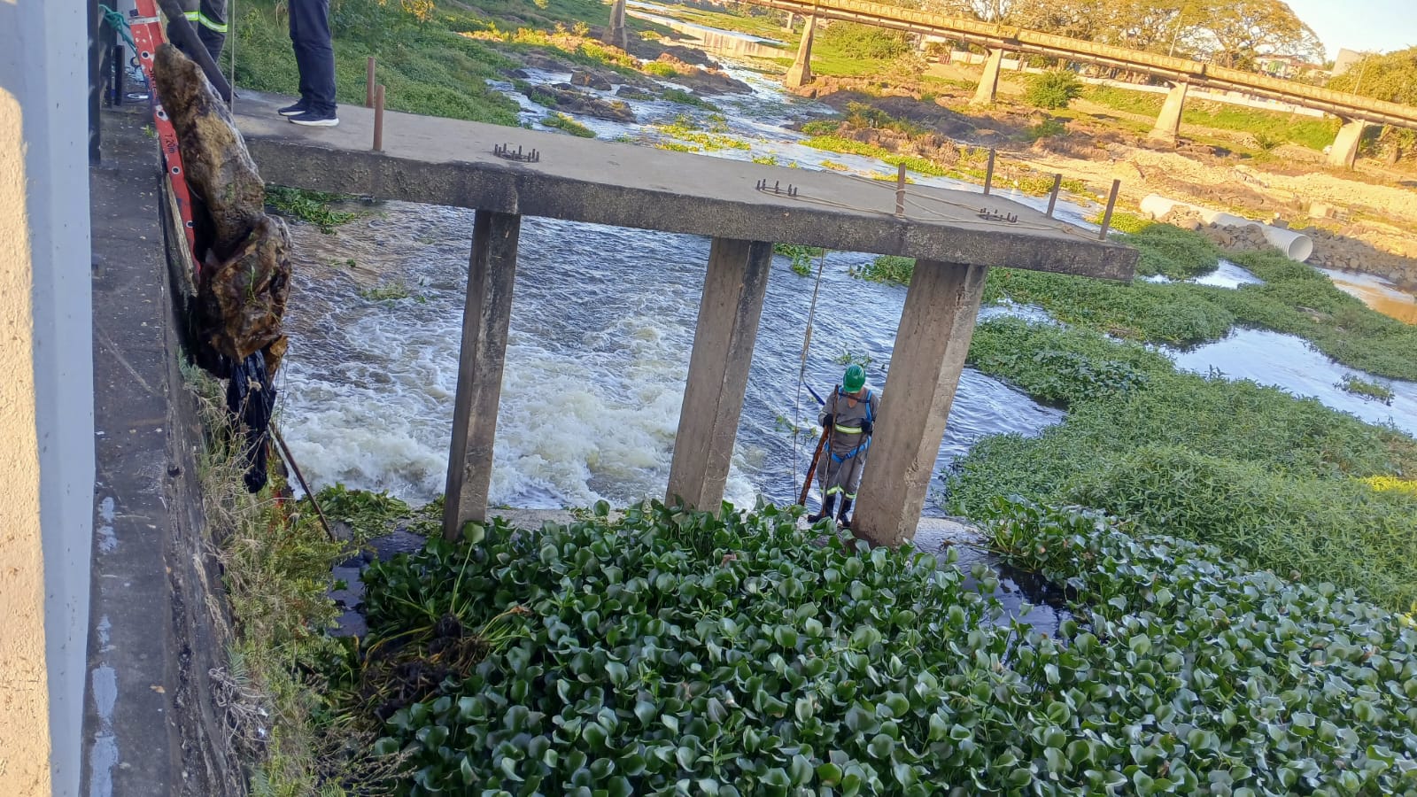 A engenheira civil da empresa RCI Jéssica Chaussê Santos explicou que a execução de limpeza das comportas pretende liberar entre 20 e 30 centímetros das do nível da água do rio a montante e isso facilita o fluxo da água e a viabilidade dos serviços como a construção das fundações.