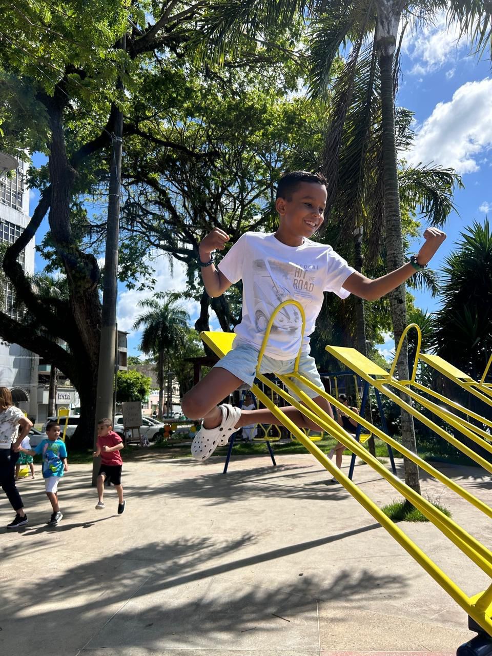 Longe das paredes, a simplicidade da praça permitiu aos presentes na comemoração, criar uma conexão no ambiente, tornando o espaço público o local ideal para as crianças correrem, rir e brincar com segurança.