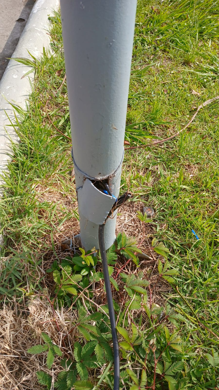 Os atos de vandalismo também se estendem ao sistema de iluminação pública que, sucessivamente, realiza a reposição de cabeamento de energia, refletores e lâmpadas em toda cidade.