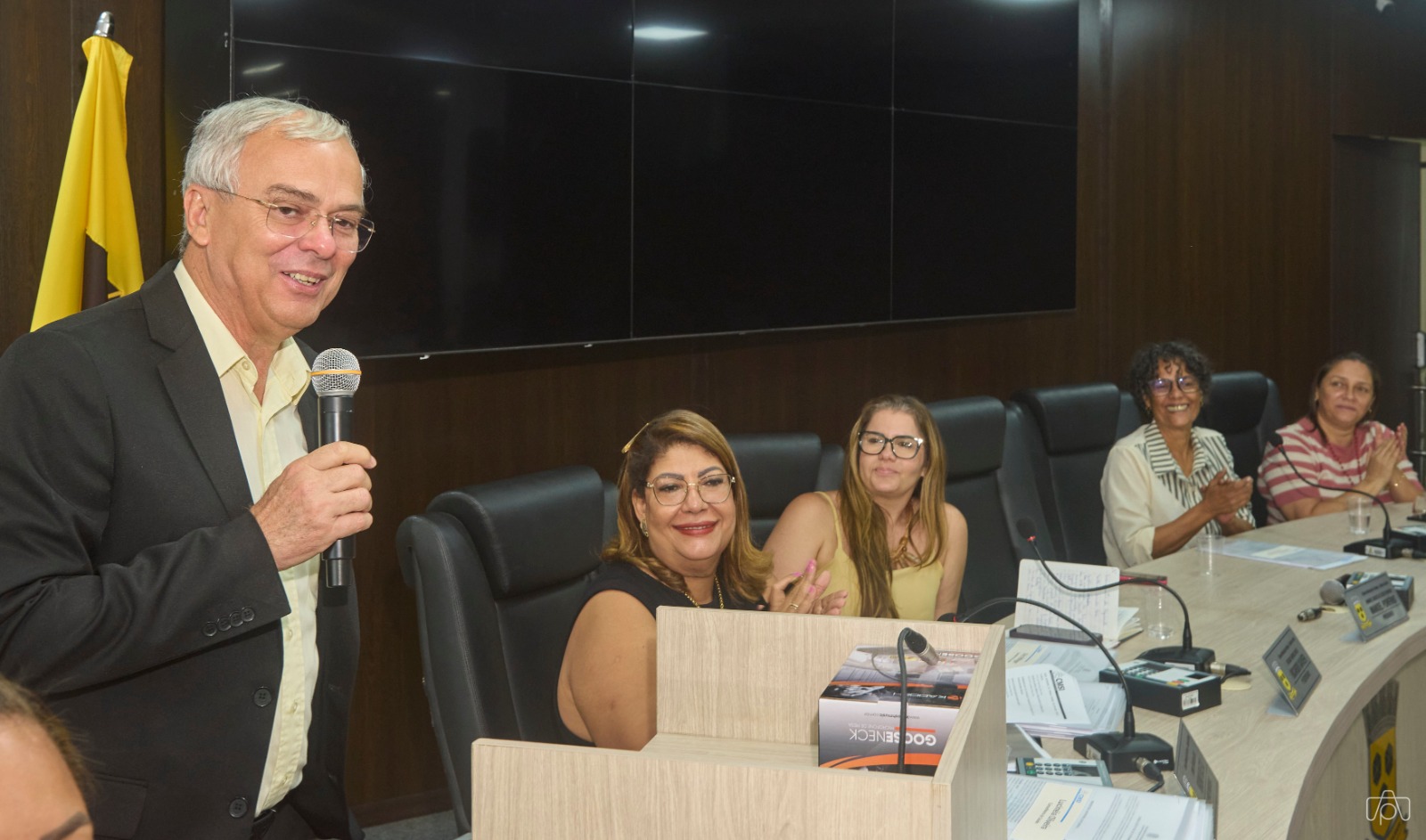 A solenidade foi coordenada pela atual presidente Liamara Bricidio, contando com a presença de Jaimeire Pessoa, secretária-executiva do CMS; Lívia Mendes Aguiar, secretária municipal de Saúde e secretária-geral; Lucinéia Oliveira, vice-presidente, Karla Lucia Oliveira, secretaria-adjunta; do vice-prefeito e secretário de Promoção Social e Combate à Pobreza, Josué Brandão Júnior, de representantes das instituições eleitas e de convidados.