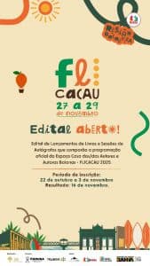 As inscrições deverão ser feitas desta quarta-feira, dia 22, até 3 de novembro, no site da FLICACAU 2025 (https://sarcacomunicacao.com.br/FLICACAU.php). O resultado está previsto para o dia 16 de novembro. A participação é gratuita.